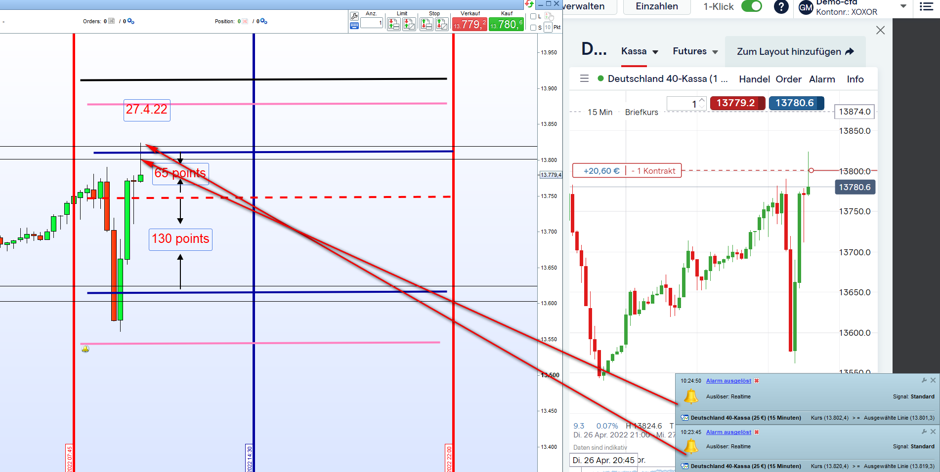 Weil du 55 Punkte berücksichtigst im Chart heute? Dann hätte man heute morgen auch das Doppel Gap handeln können? (XETRA 13924)