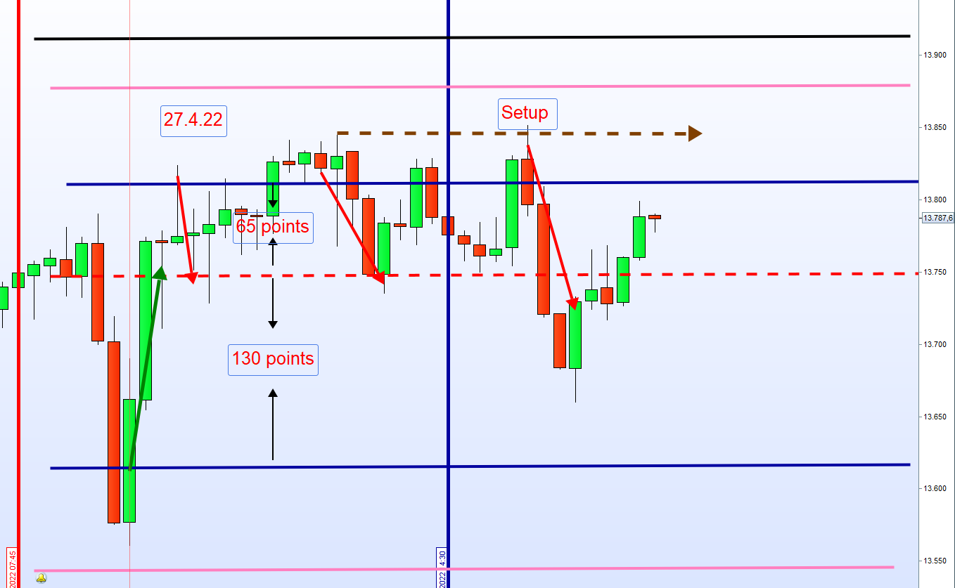 Wenn Kurs zwischen 30-35, dann 65 Punkte für Short und die erste Zone Long wird erweitert auf 130 Punkte