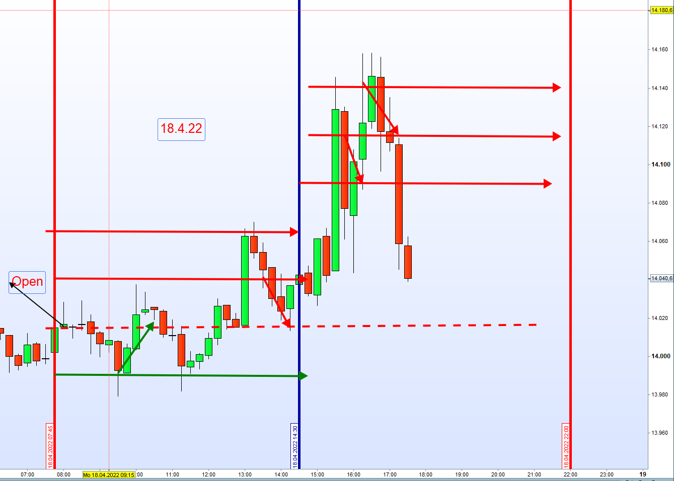 Und mir mal den Dax anhand der letzten Woche angeschaut. Ich möchte das System verinnerlichen, was sicher etwas dauern wird.