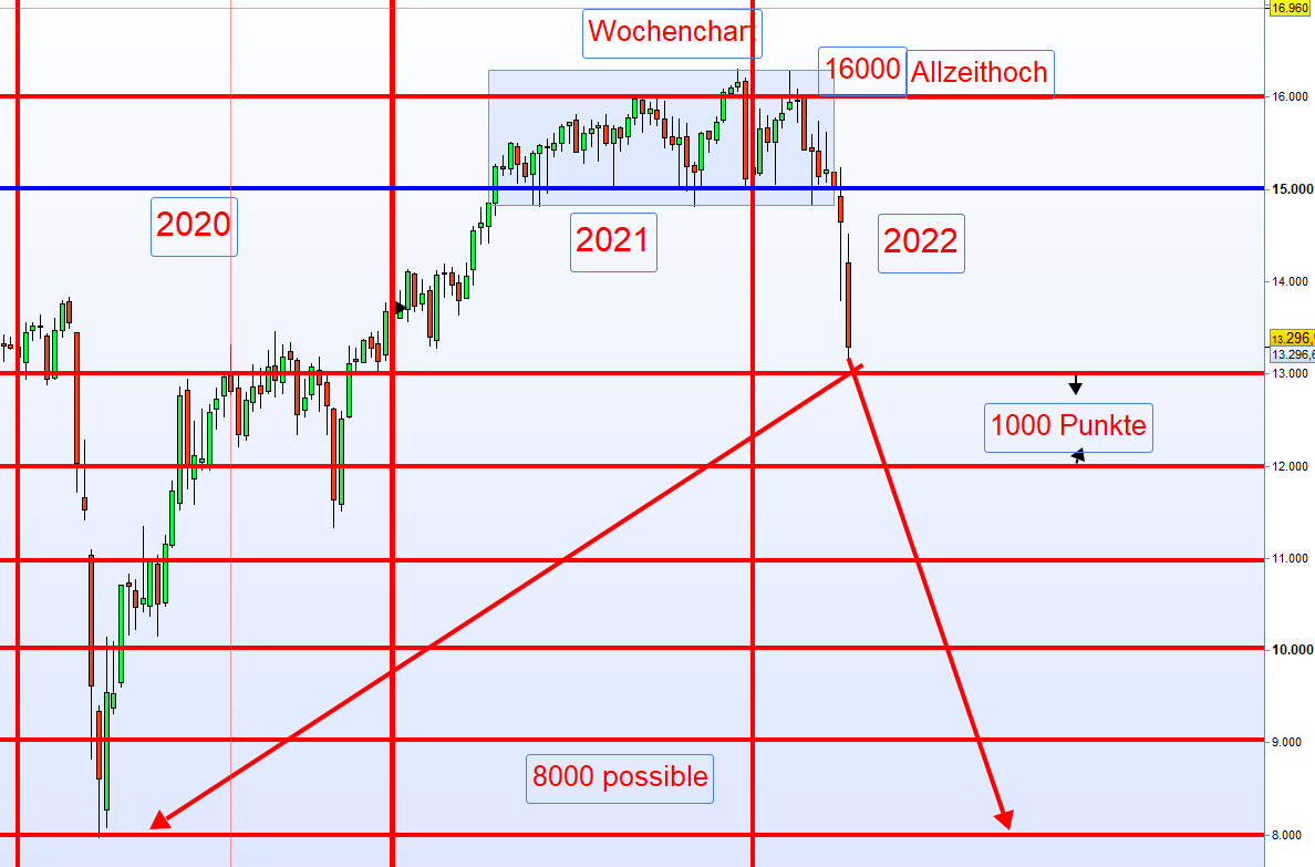 Die Wahrscheinlichkeit dass der Kurs bis 8000 Punkte korrigiert ist je nach der aktuellen Situation durchaus möglich.