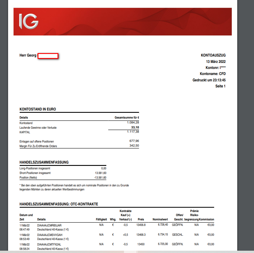 Sofern am Wochenende wiederum positive Nachrichten anstehen ist am Sonntag um Mitternacht wiederum mit einem Kurssprung zu rechnen. Setze also einen Stopp Loss für die Shortposition mit 150 Punkten und dort eine Stopp Buy Position. Eröffnet der Kurs mit einer Gap, dann habe ich dort bei 150 Punkten auch eine Stopp Buy Position mit der Hälfte der Short Position gesetzt. Natürlich beobachte ich auch die Eröffnung und kann entsprechen agieren.