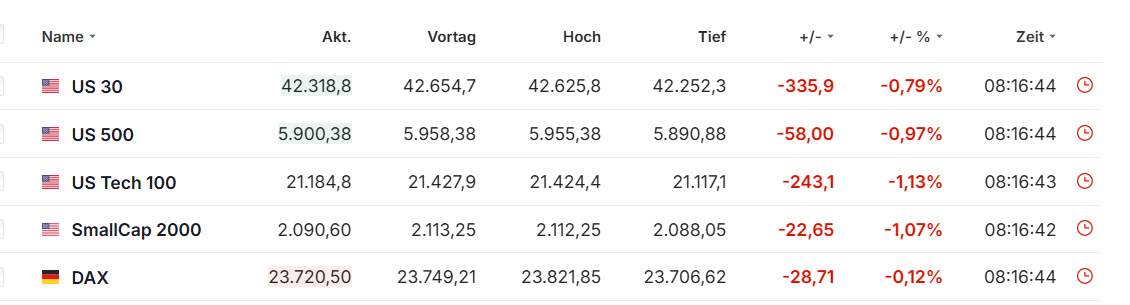 Der DAX (German 40) startete verhalten in die neue Woche. Nach der spürbaren Abwärtskorrektur in den letzten Minuten des Freitagshandels – ausgelöst durch die überraschende Herabstufung der US-Bonität durch Moody’s – setzte sich die Zurückhaltung am Montag fort.
