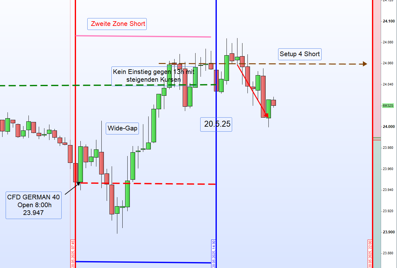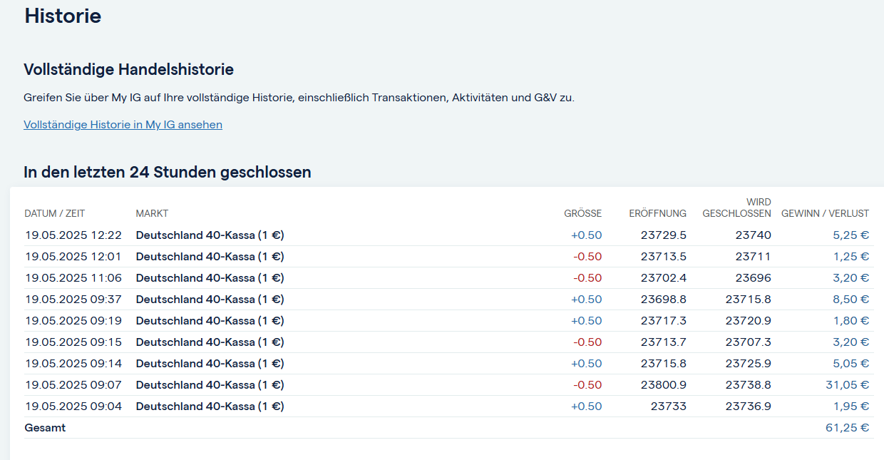 DAX-Handel am 19.05.2025 – Ruhiger Wochenauftakt mit leichtem Druck, später Long-Ausbruch