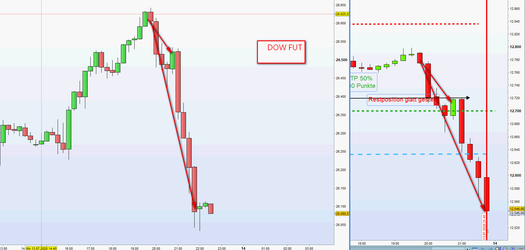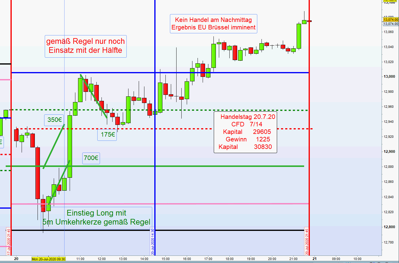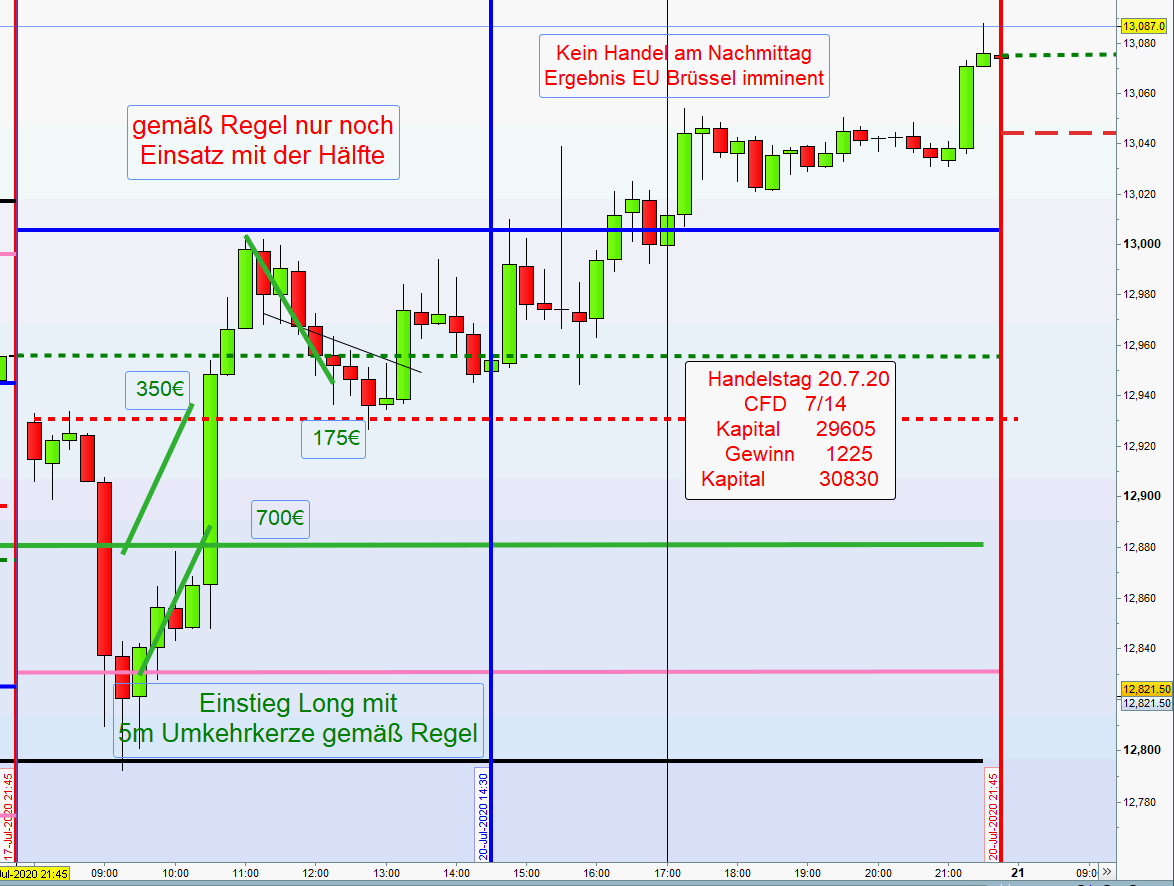 Heute ging es um Covid und Kalifornien. Daraufhin gab der DOW 500 Gewinnpunkte ab und mit ihm natürlich der FDAX.