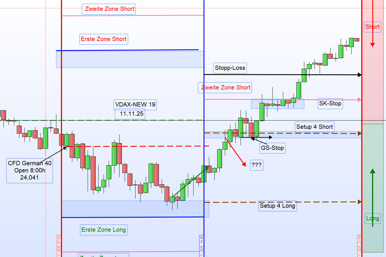 Zonenfestlegung (gleiches Schema wie am Freitag)Für den heutigen Handel werden die Zonen identisch wie am Freitag festgelegt: