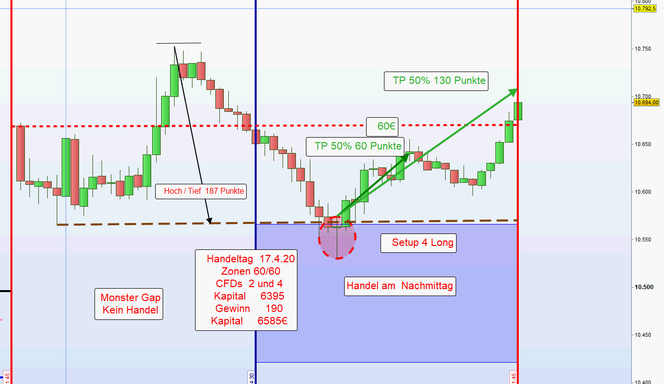 auf den ersten Blick sah es für mich nach einem Short Trend Tag aus. FDAX über Nacht -100 Punkte und Asien und DJIA Future negativ. Aber lt. Definition muss DJIA Future über 0,5 % im Minus sein und das ist nicht der Fall. Von daher ganz normaler Zonenhandel. FDAXOpen und FDAXClose liegen auf dem Screenshot übereinander.