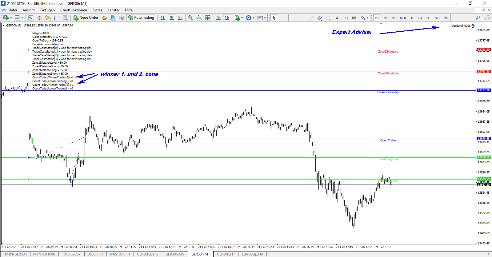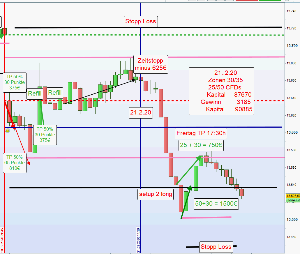 Ergebnis Vormittag mit Zeitstopp um 14.30h = 935€ und Handel am Nachmittag mit Zeitstopp freitags um 17:30h = 2250€ . Insgesamt also 3185€. Siehe Chart.
