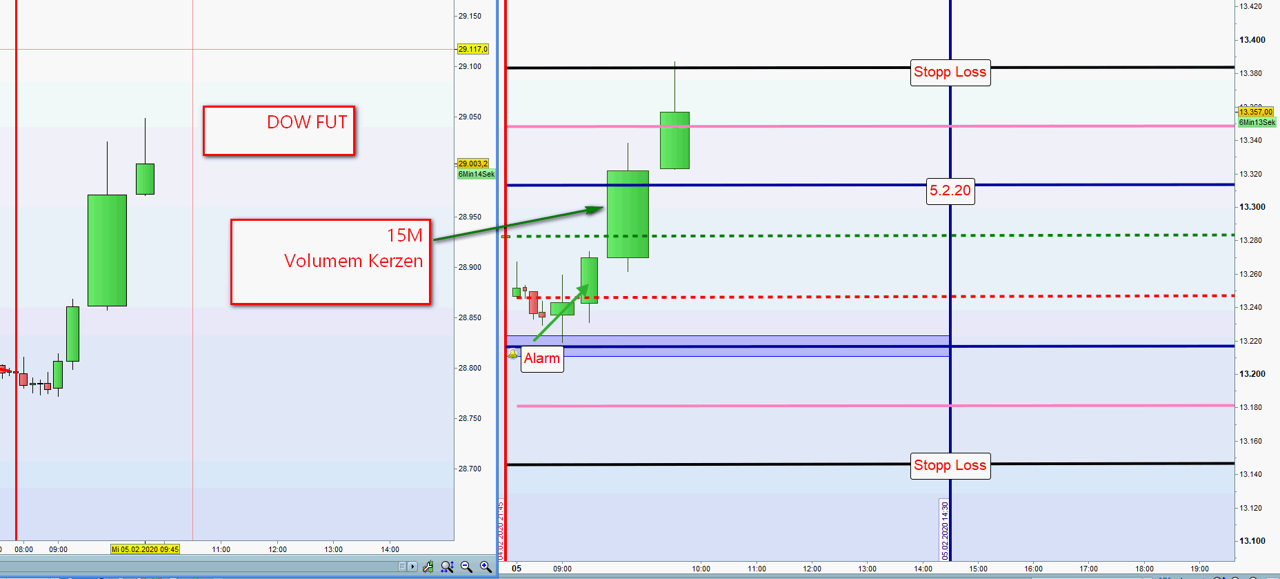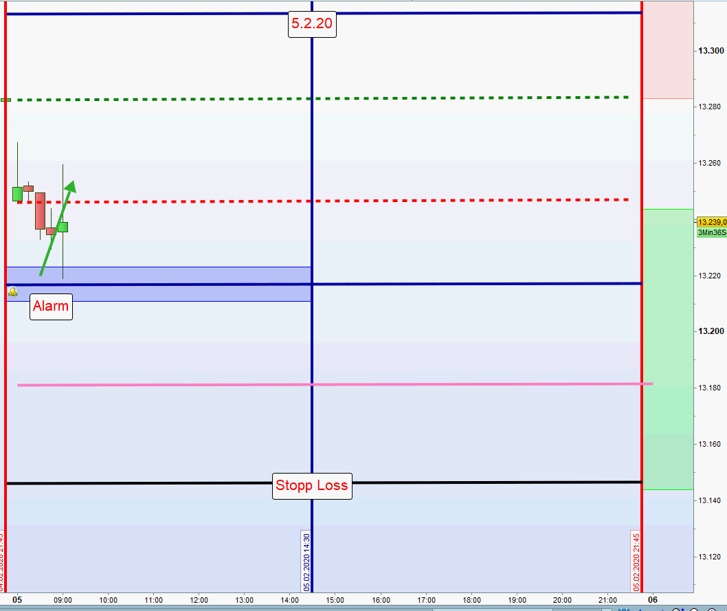 Positionseröffnung in Abstimmung mit DJIA FUTURES Notieren um 8:00h die DOW FUT (DJIA FUT) mit 0,5% im plus/minus und die asiatischen Börsen, China und Japan, haben ebenfalls mit 0,5 plus/minus geschlossen erwägen wir den Einstieg Long/Short wenn ein Katalysator in Gestalt sehr positiver/negativer Nachrichten über Nacht vorliegt.