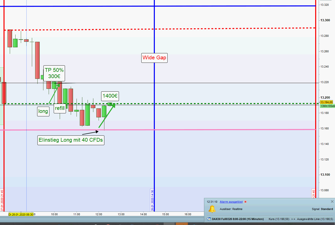 Für den heutigen Handelstag liegen zwei Setups vor: Wide Gap und EZB Tag aber auch Unsicherheit in den Märkten. Habe mich für den normalen Handel an den Aktionszonen entschieden.Dieser Beitrag wurde bereits 1 mal editiert, zuletzt von „GeorgM“ ()