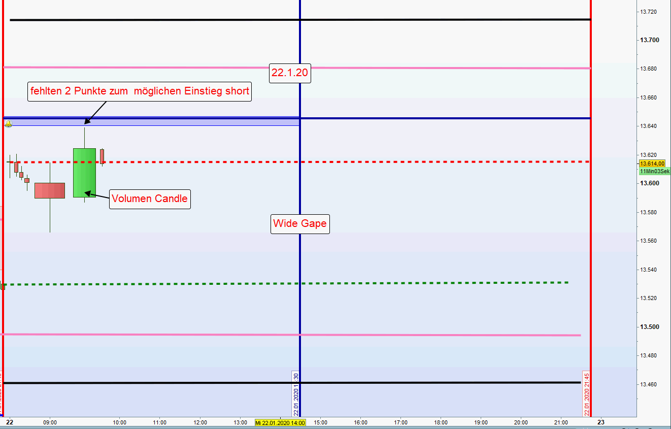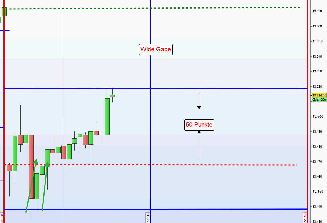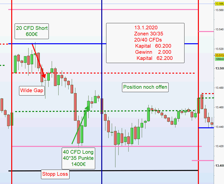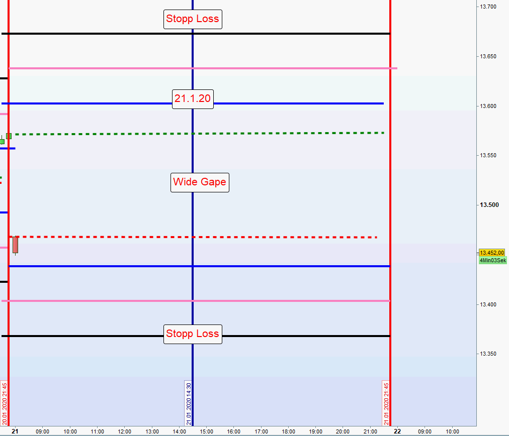 Ein systematischer Handelsansatz mit diskretionären Elementenverlangt Präsenz in der Nähe des Bildschirms. Beispielsweise sollte nach Erstellung des Handelsrahmens etwa 5 bis 10 Punkte vor den Zonen einen Alarm gesetzt werden. Manchmal durchschreiten die Kurse die Zonen mit Dynamik und zuweilen gibt es eine punktgenaue Berührung der Zonen mit sofortigem Reversal. Auch das knappe Verfehlen der Marken um ein oder zwei Punkte kommt vor. Ein geübter Trader kann beispielsweise eine Limit-Order in Wartestellung halten, um nach dem Alarm einen sofortigen Rücksetzer ohne vorherige Orderausführung einzufangen. Dies gilt auch für die Gewinnmitnahme.