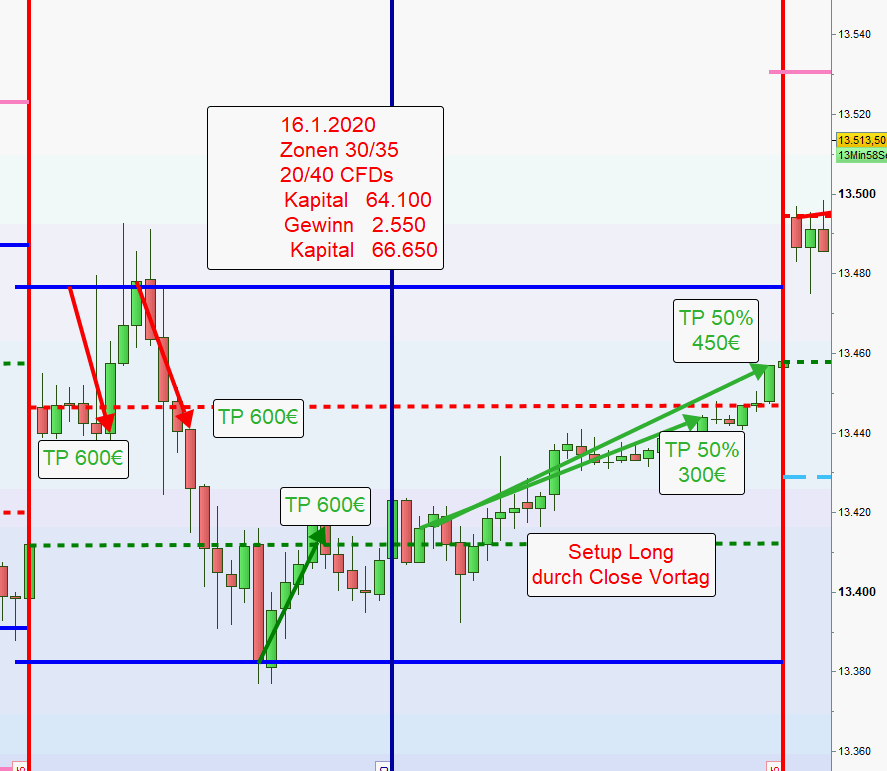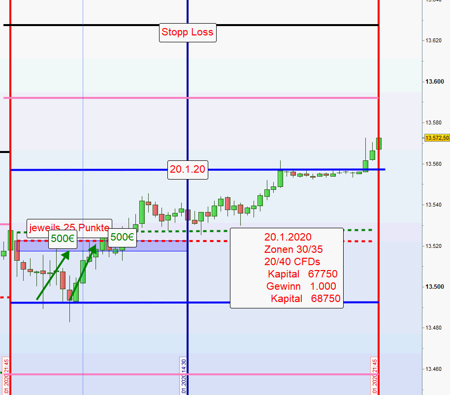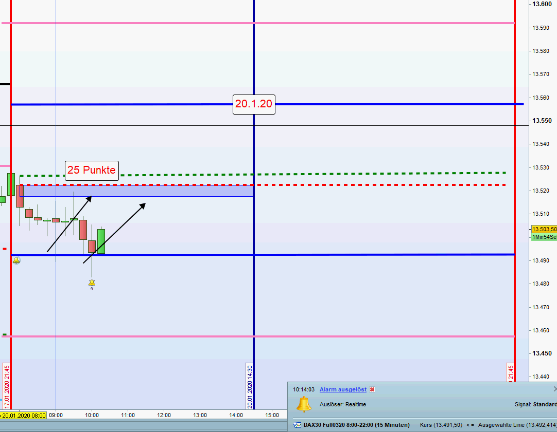 Bespiel: Laufend mit Demo Einstieg und TP mit Alarmzone üben. Zeichne im Chart, egal wo, diese Zonen ein und wenn erledigt, neue Übung. -