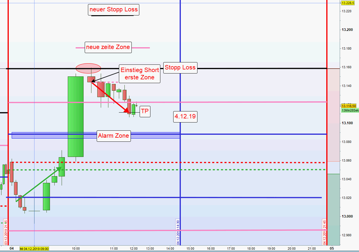 Angefügt Chart mit Einstieg Short an erster Zone und nachfolgender Anpassung. -