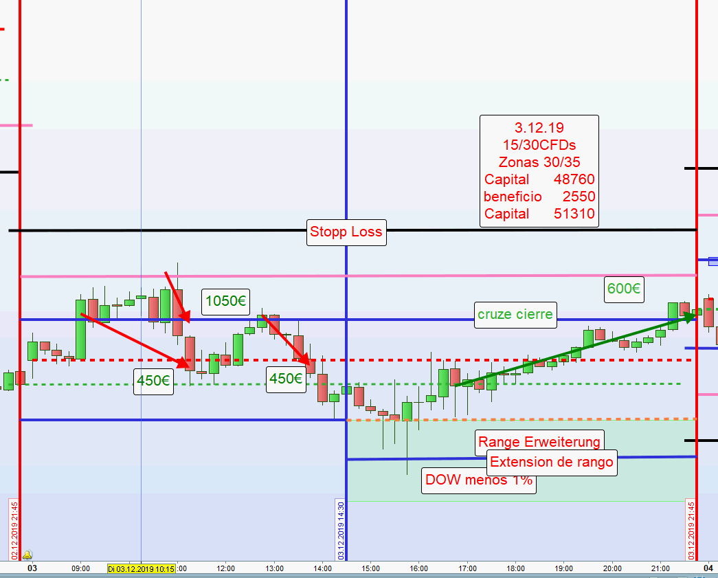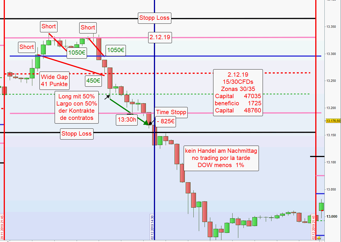 Wäre heute mit FDAX (CFD?) automatisch ein Einstieg an den beiden Zonen Short erfolgt, wäre die Gesamtposition mit 2 Punkten über dem Stopp Loss mit hohem Verlust ausgestoppt worden. -