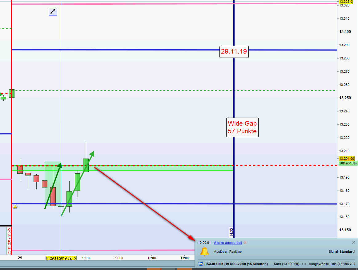 - Seit der Aufzeichnung der täglichen Charts, zurück bis 2010, wurden von 8:00h – 14:30h gemäß dem aktuellen Regelwerk höchstselten beide Zonen, Short und Long, erfolgreich abgewickelt. ( auf beiden Seiten des Charts)