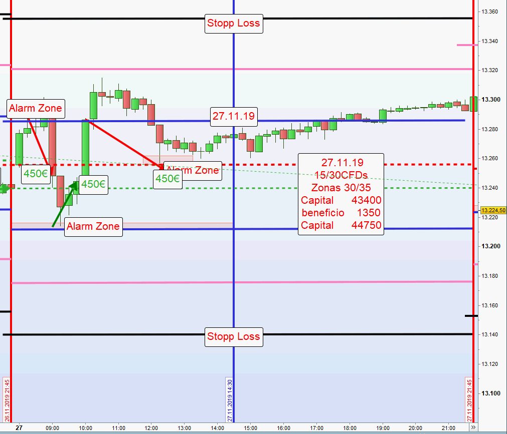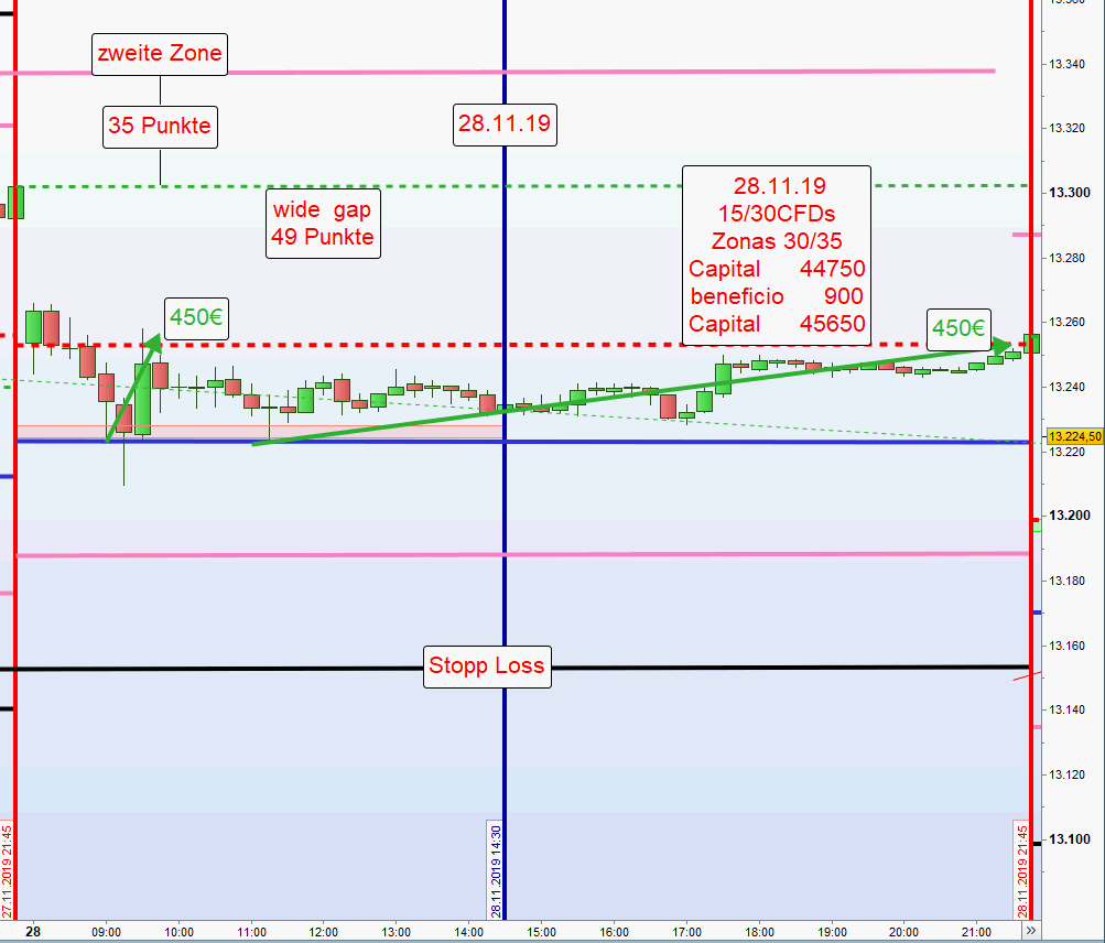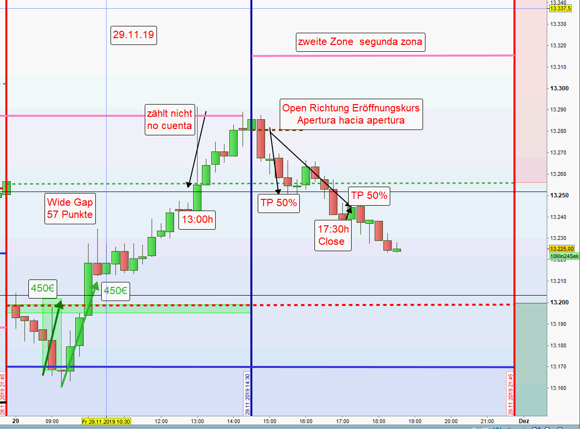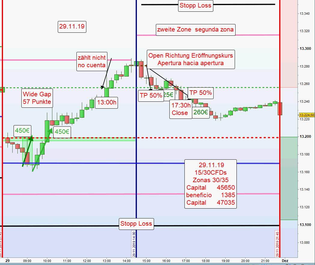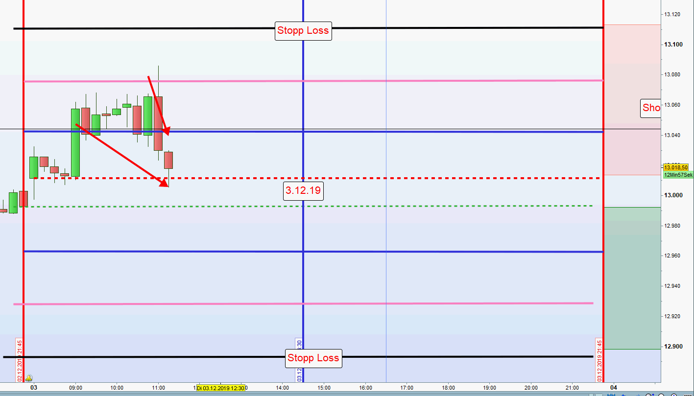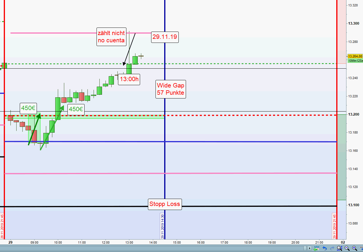 -Nach erfolgreicher Abwicklung beider Zonen, Short oder Long, werden zur Gewinnsicherung auf der anderen Seite des Charts nur noch die Hälfte der Kontrakte gehandelt. Nach möglicher Ausstoppung wird dann noch ein Teilgewinn erzielt. Weiterhin wird auf einen Handel am Nachmittag verzichtet insbesondere auch dann, wenn die US Börse stark im Minus notiert.Dieser Beitrag wurde bereits 1 mal editiert, zuletzt von „GeorgM“ ()