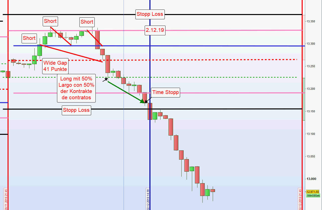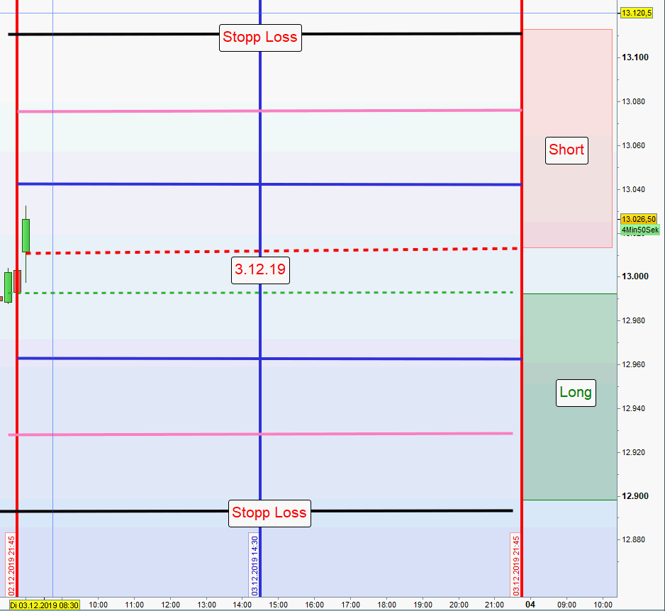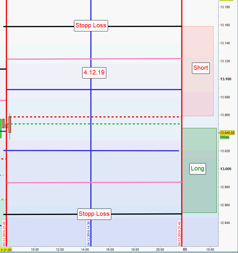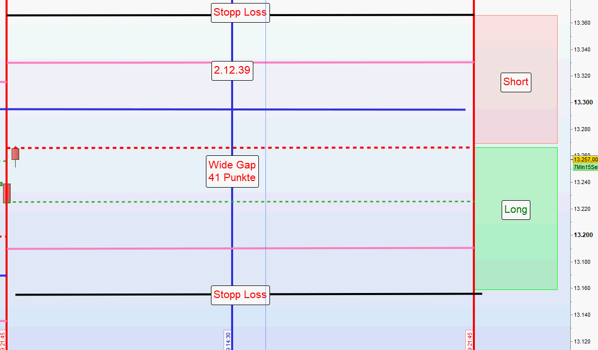 - Wurden vormittags bereits Gewinne erzielt bzw. eine Position aus der ersten Zone noch offen ist, dann erfolgt in der Zeit von 13:00h bis 14:30h keine weitere Positionseröffnung.