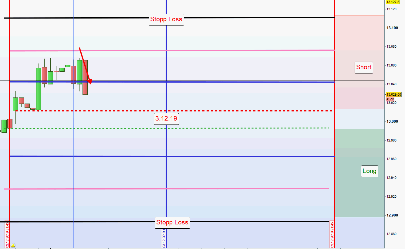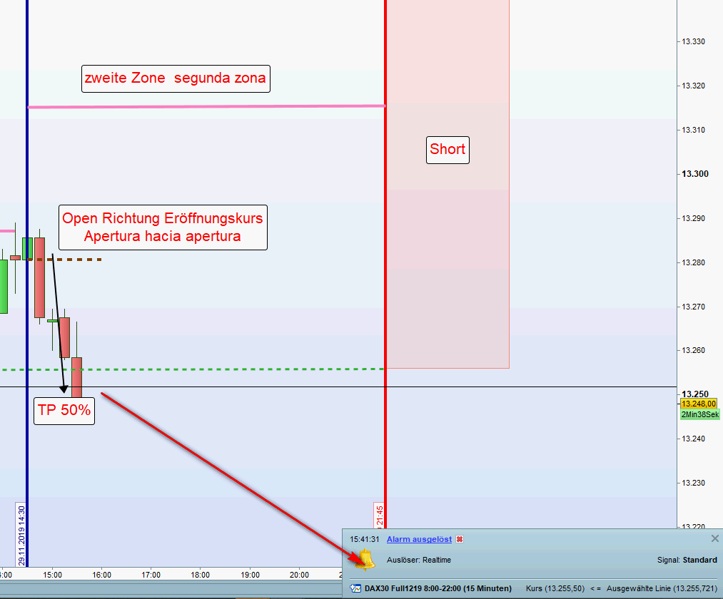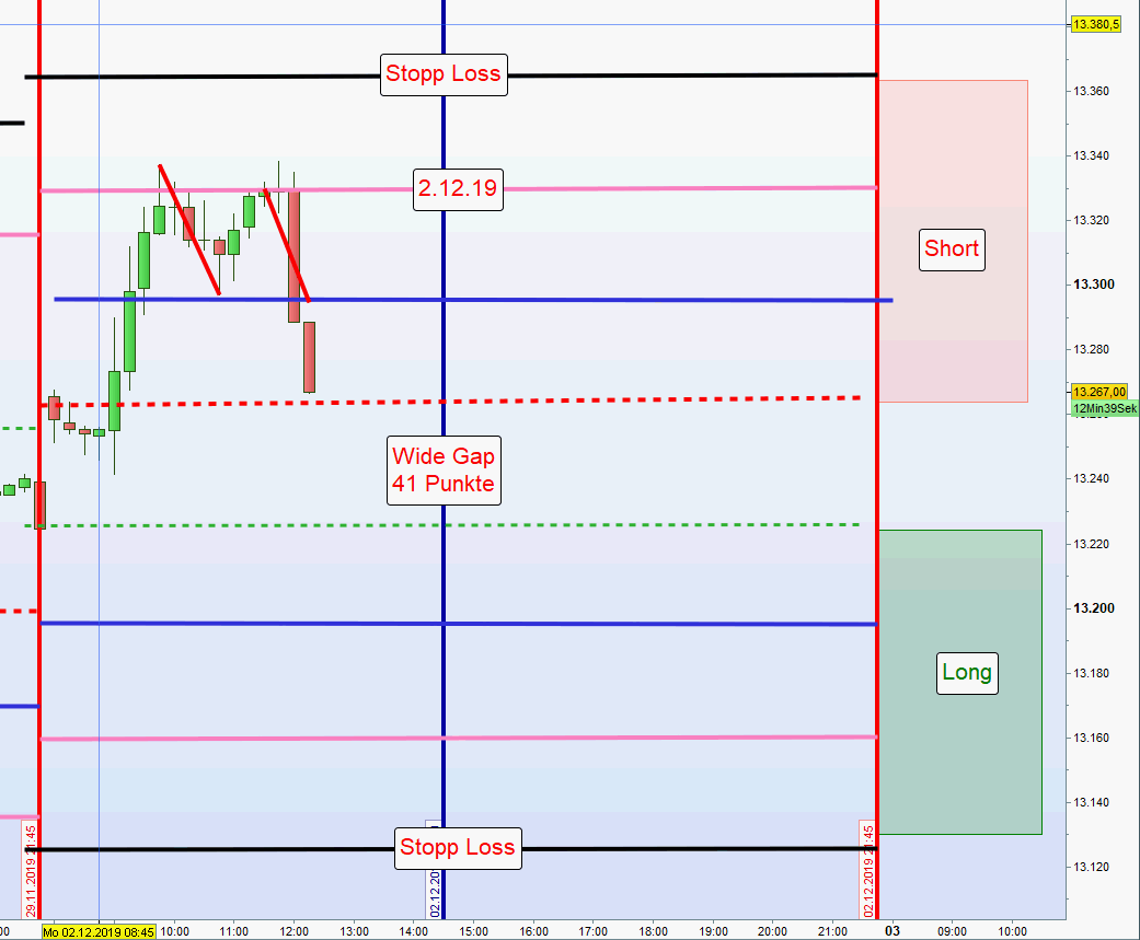 - Wurden vormittags bereits Gewinne erzielt bzw. eine Position aus der ersten Zone noch offen ist, dann erfolgt in der Zeit von 13:00h bis 14:30h keine weitere Positionseröffnung.