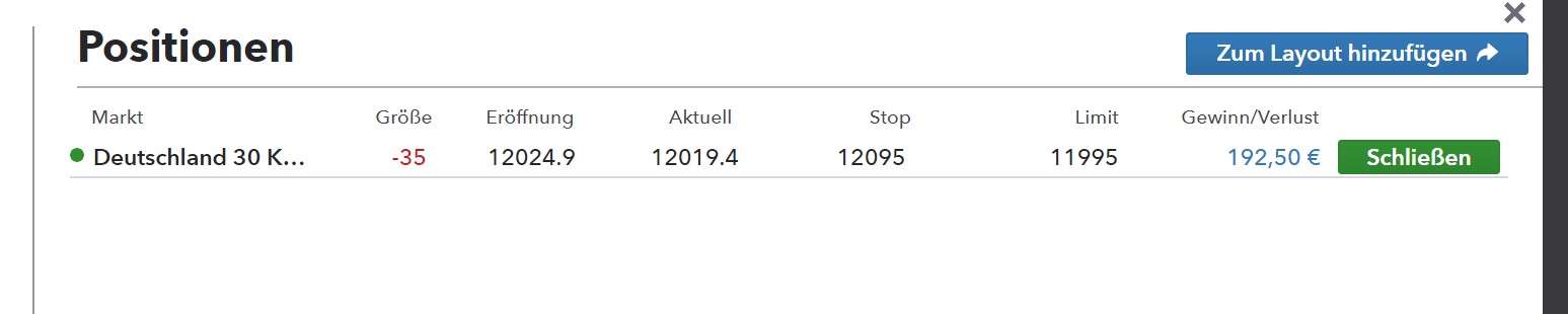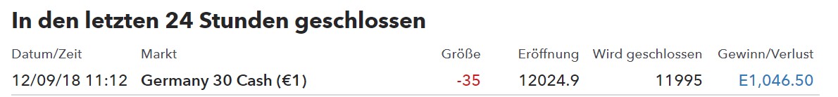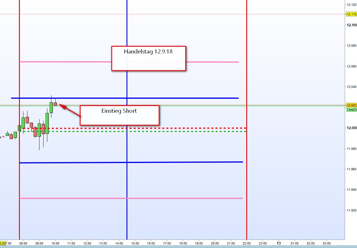 Heute erfolgte der Einstieg 5 Punkte unter der Shortlinie und das Gewinnziel liegt bei 30 Punkten.