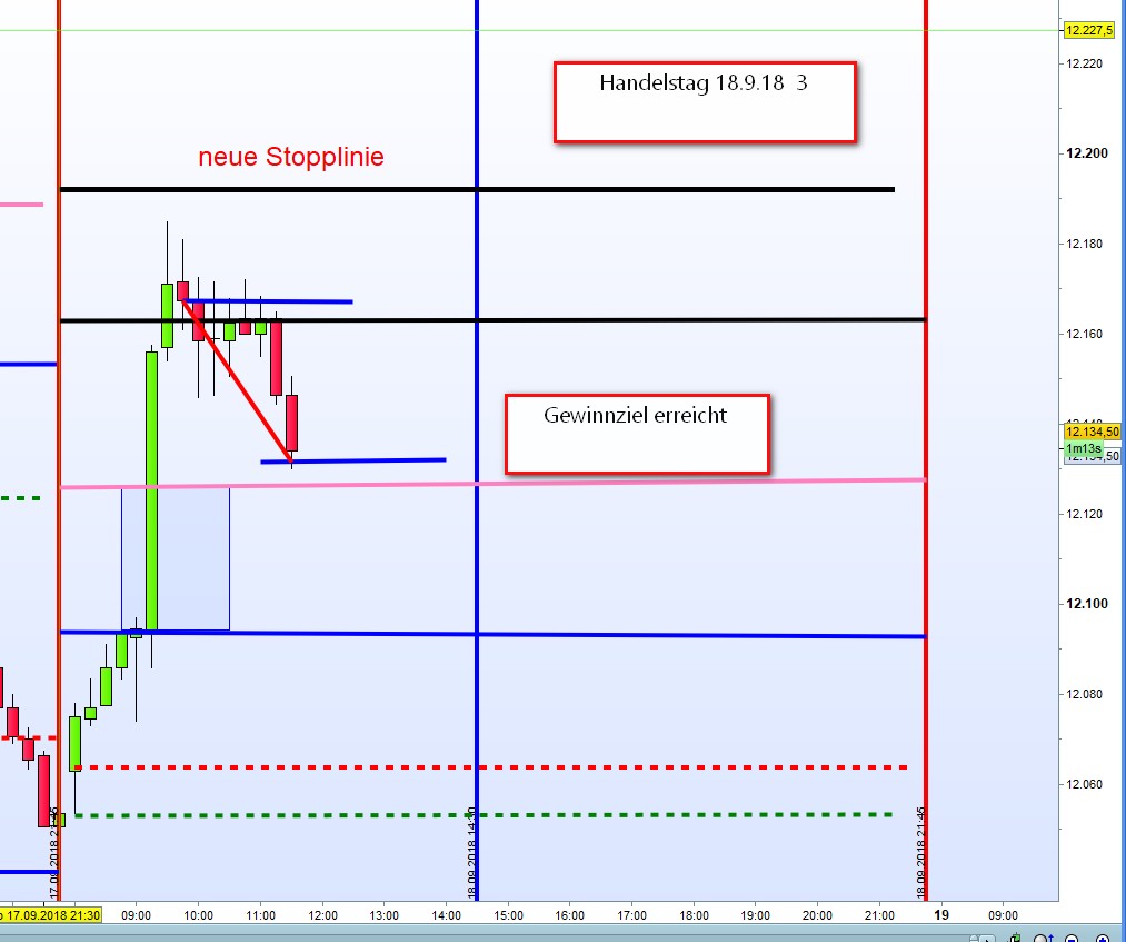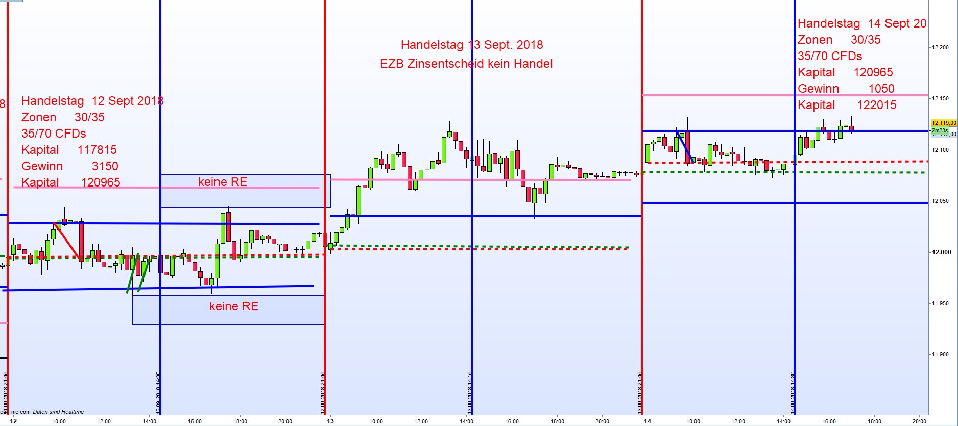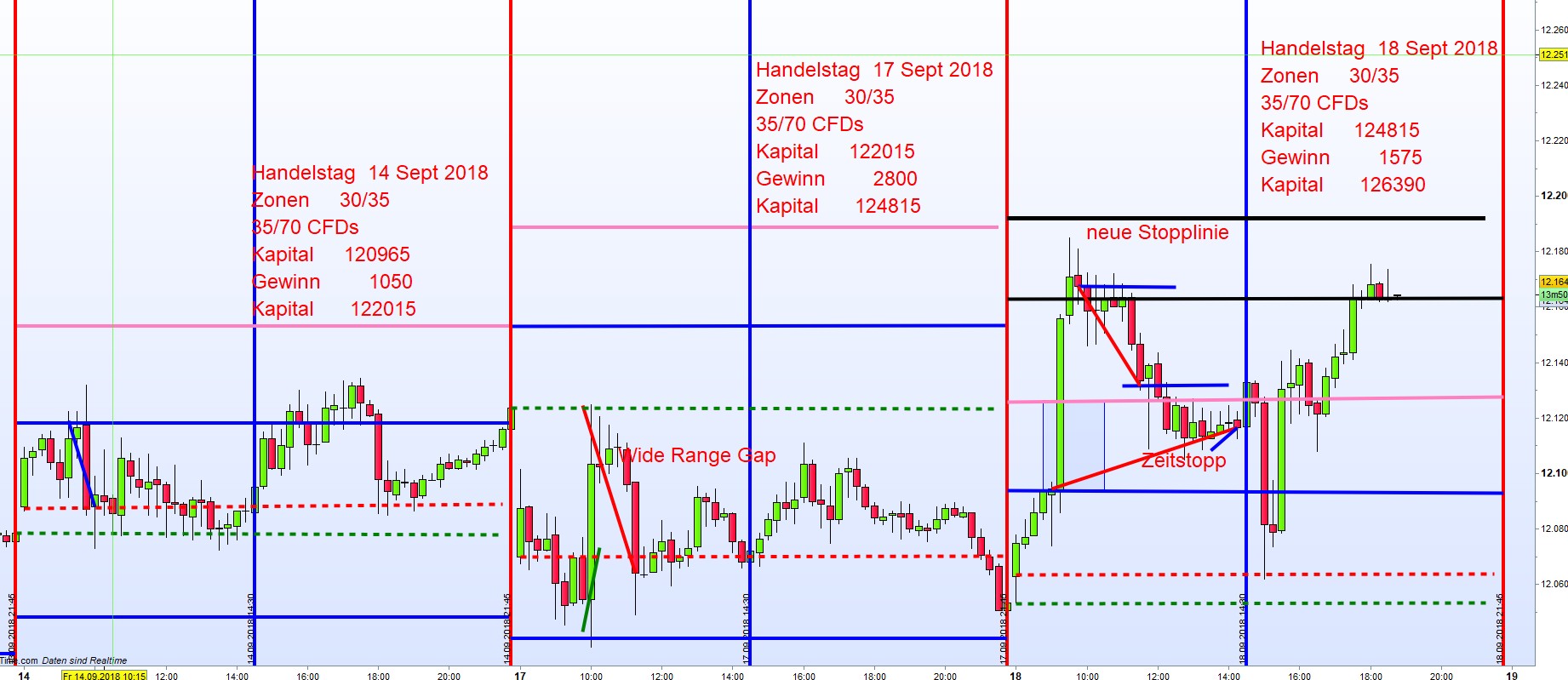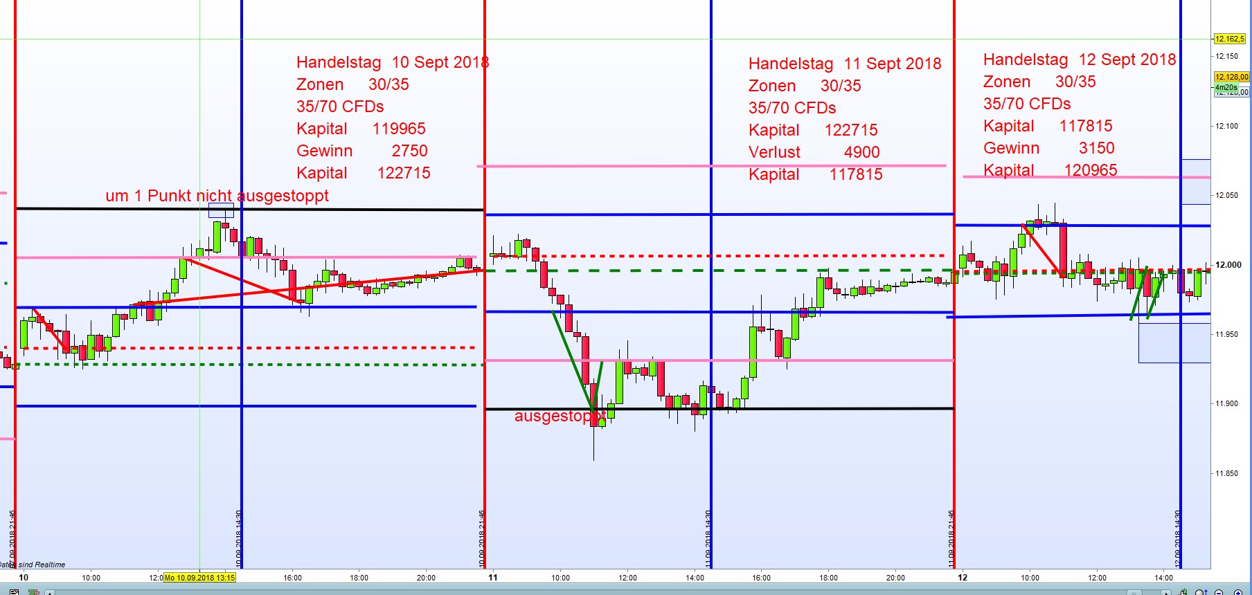 Neueinsteiger mit diskretionärem Handel dieser Strategie werden sich immer wieder mit dem Einstieg an der ersten Zone, weil früh morgens mit allgemeiner Unsicherheit, schwer tun. Habe für diese eine gute Nachricht: Es spielt keine Rolle ob etwas über oder unter dieser Zonenlinie. Dazu folgt alsbald ein neuer Beitrag. -