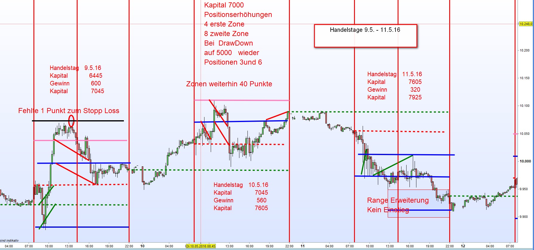 Der Wunsch eines Traders. In einem höheren Zeitrahmen( Langfrist, Positions-und Swing Trading) meistens nicht zu verwirklichen.Es bietet sich FDAX Intradaytrading an.
