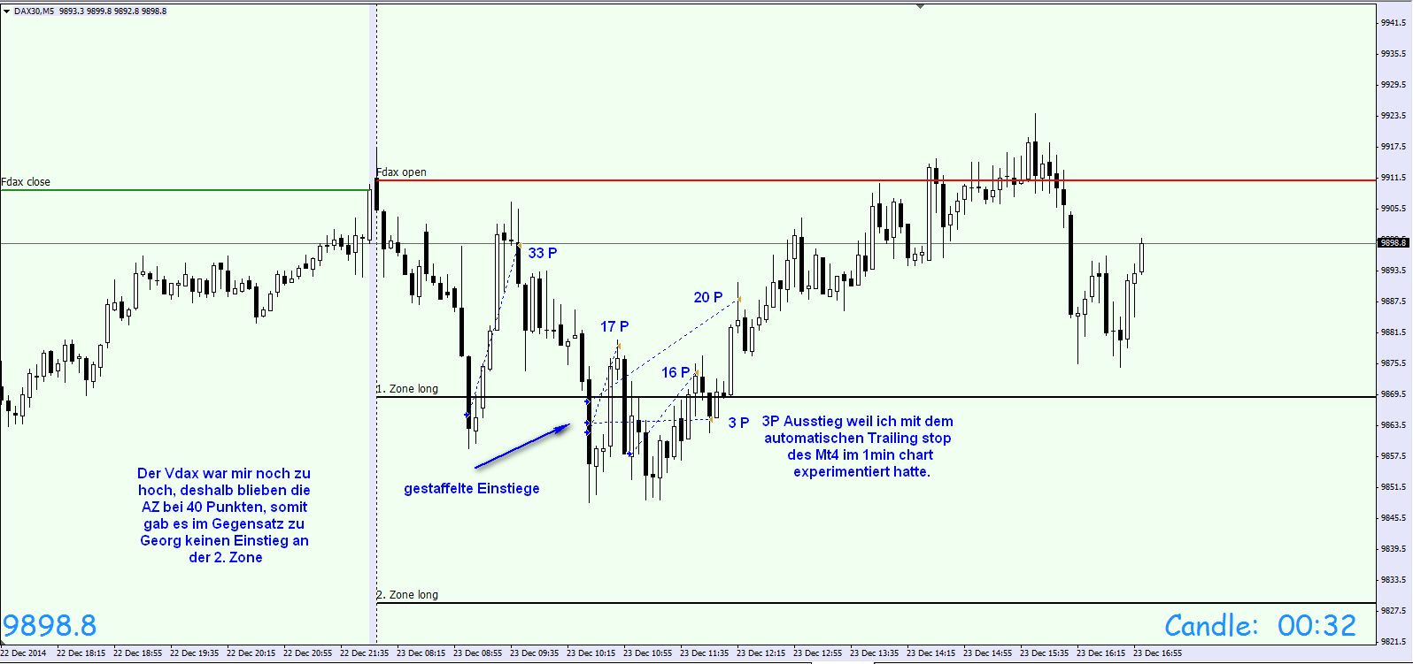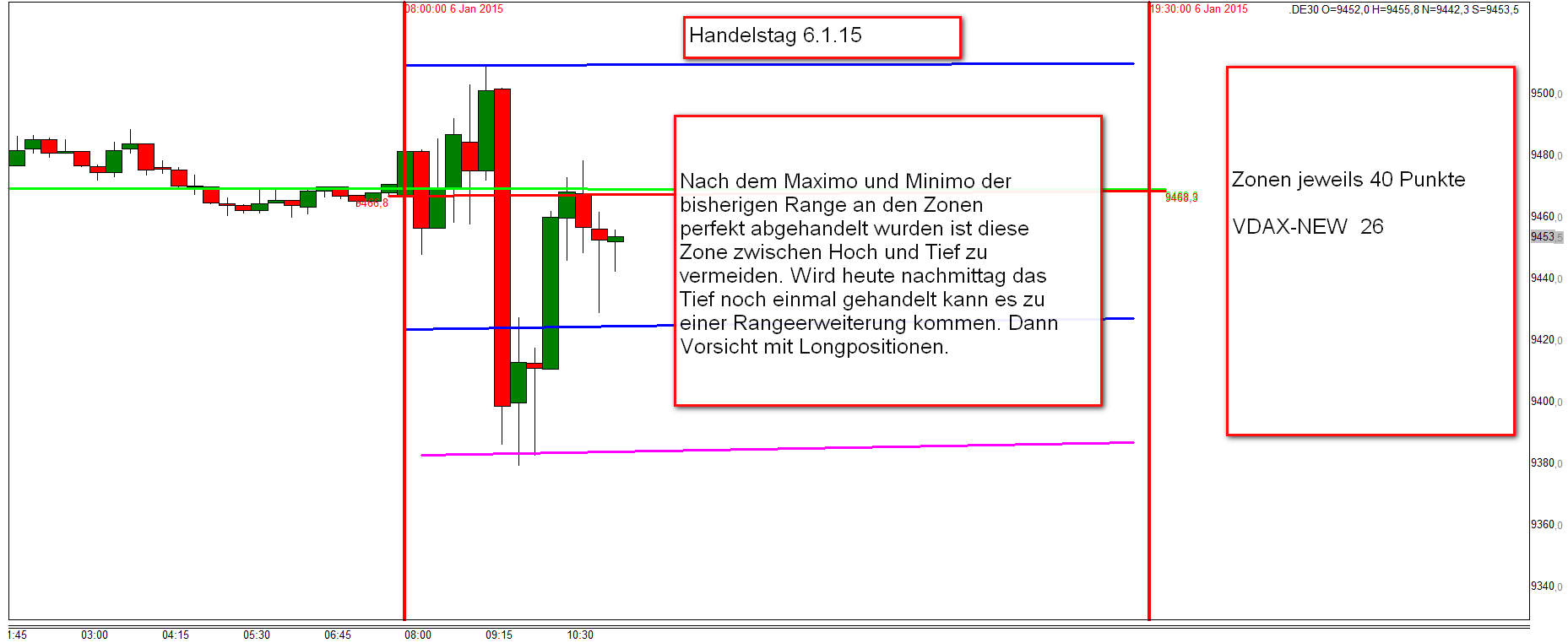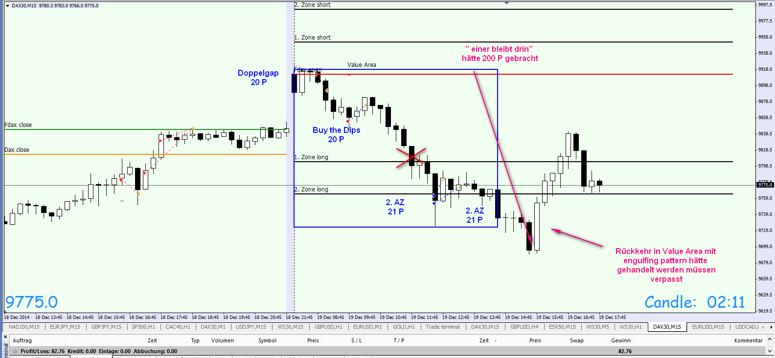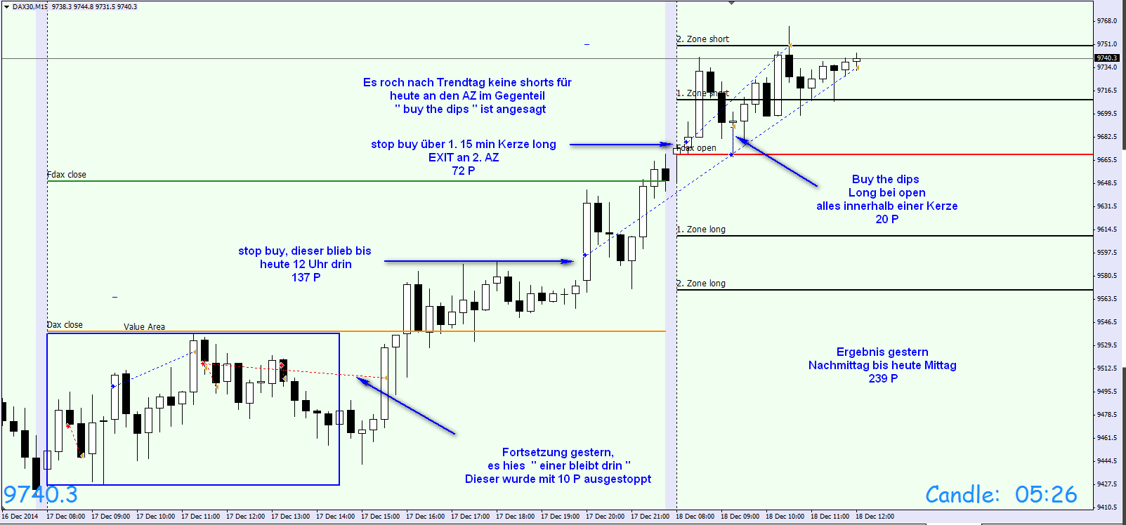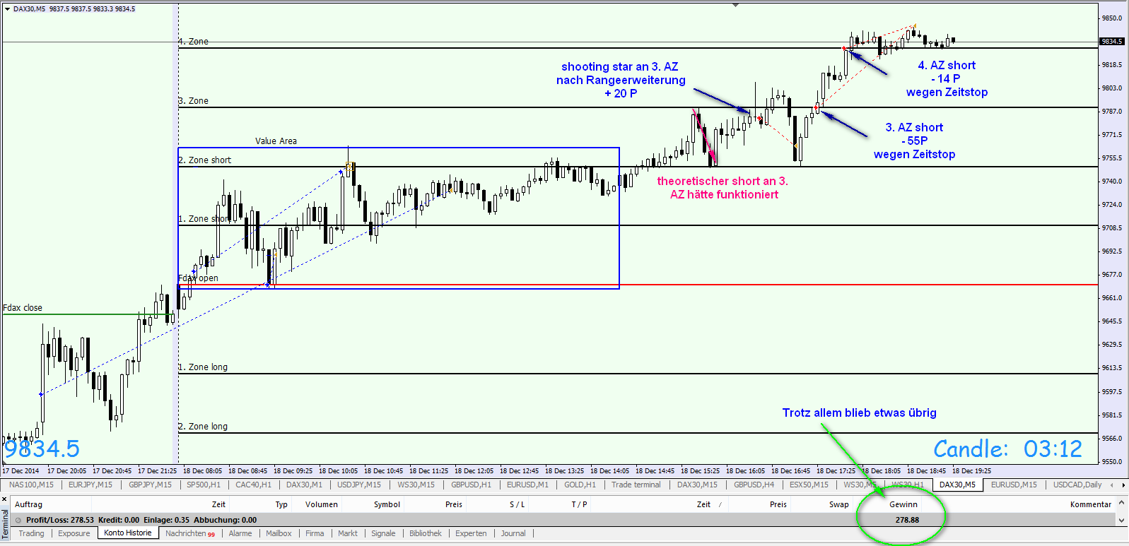 Werde in den kommenden Wochen das Regelwerk up to date zusammenfassen. Außer den Regeln liegt der Schwerpunkt auf der Korrelation DOW/DAX . Habe mich intensiv mit dem Thema beschäftigt und es ist der Knackpunkt für das Verständnis der täglichen Trading Range. Insbesondere folgt der FDAX nachmittags weitestgehend den DJIA FUT . Bei Analyse der eingefügten Charts ist zu erkennen, dass um 16:15h eine erhebliche negative Korrelation DOW/DAX vorlag. Das Ergebnis war, dass der DAX nach Reversal DOW am nachfolgenden Bewegungstief 180 Punkte nachgab.