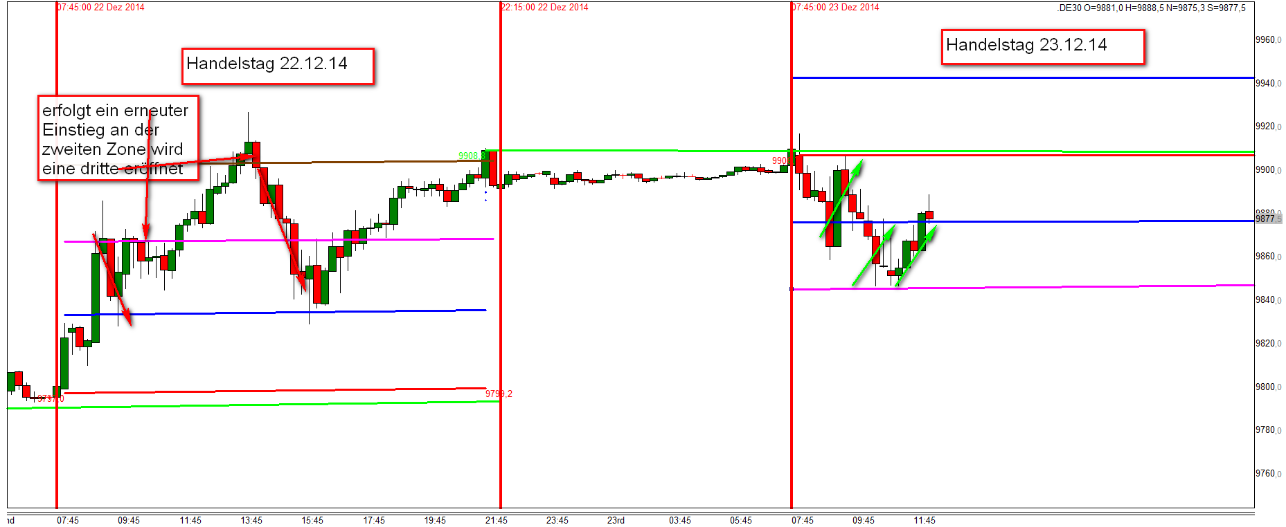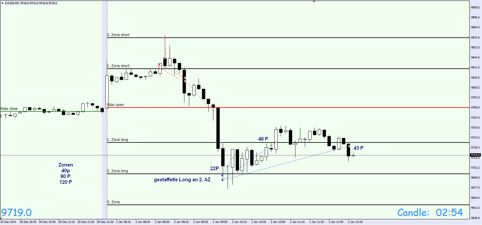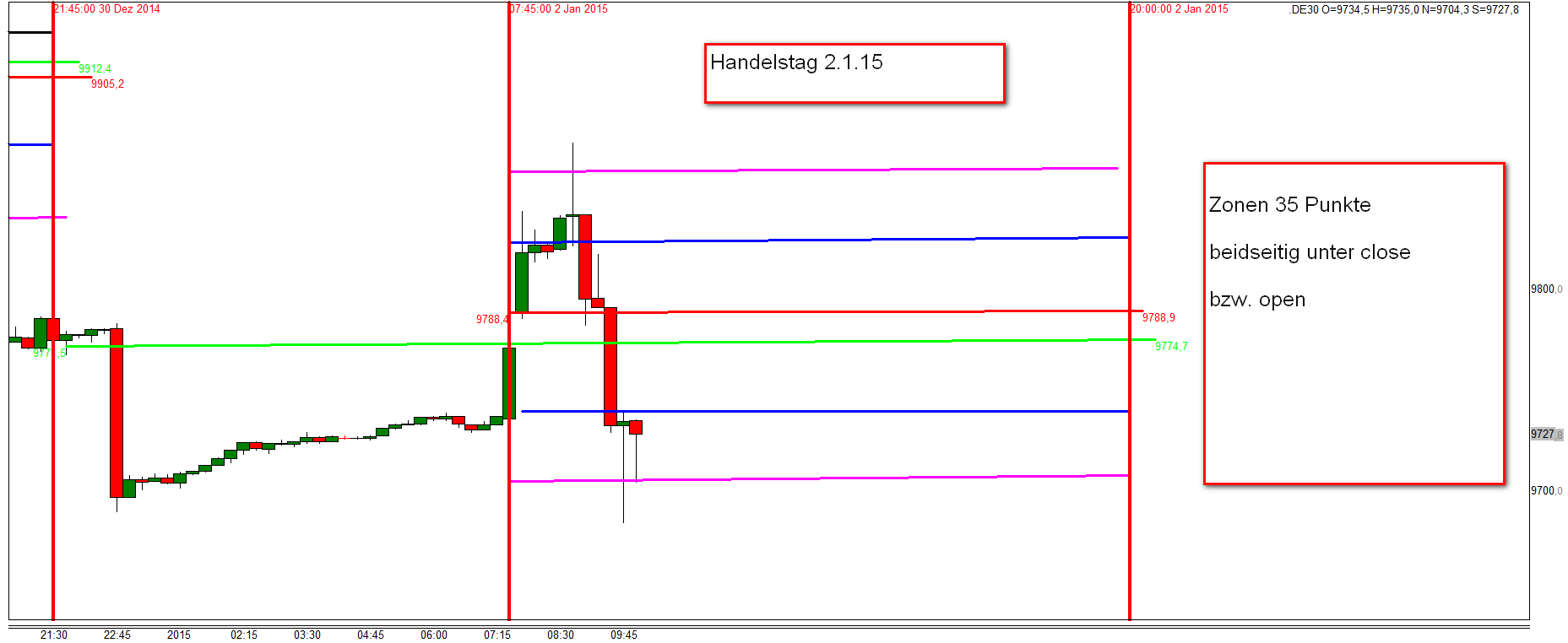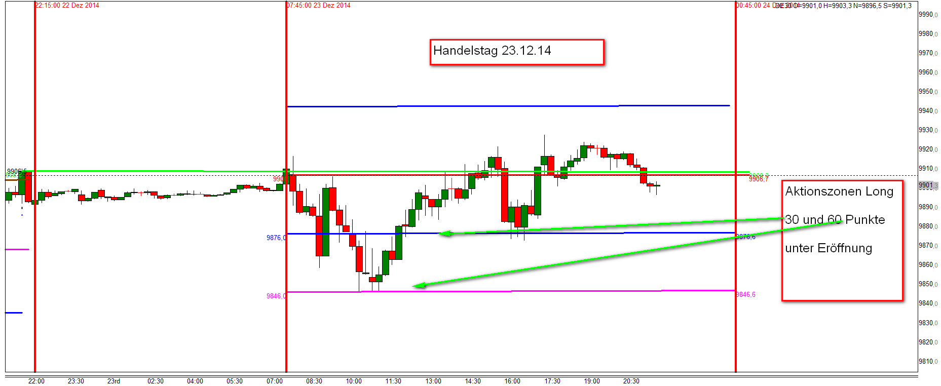 Werde in den kommenden Wochen das Regelwerk up to date zusammenfassen. Außer den Regeln liegt der Schwerpunkt auf der Korrelation DOW/DAX . Habe mich intensiv mit dem Thema beschäftigt und es ist der Knackpunkt für das Verständnis der täglichen Trading Range. Insbesondere folgt der FDAX nachmittags weitestgehend den DJIA FUT . Bei Analyse der eingefügten Charts ist zu erkennen, dass um 16:15h eine erhebliche negative Korrelation DOW/DAX vorlag. Das Ergebnis war, dass der DAX nach Reversal DOW am nachfolgenden Bewegungstief 180 Punkte nachgab.