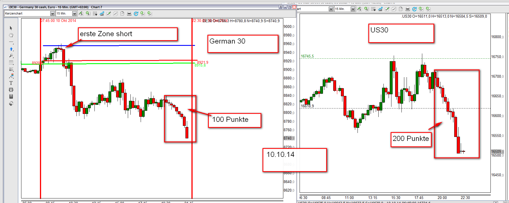 Eingefügt 5 Minuten Charts für den Shorteinstieg am Freitag.