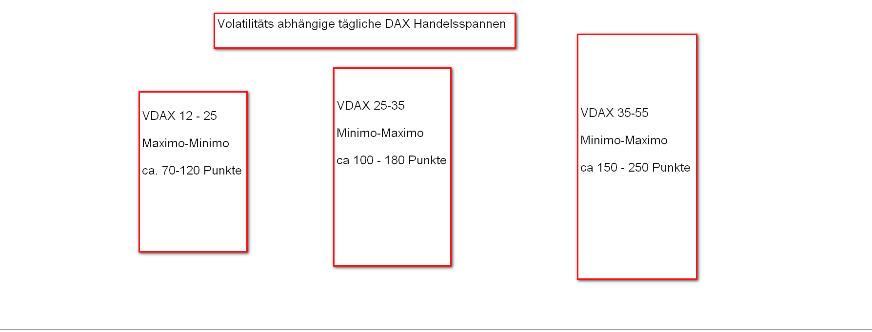 Das Ziel eines privaten Traders ist die Erwirtschaftung eines konstanten Einkommens. Als Handelsinstrument steht börsentäglich der FDAX/CFD GERMAN 30 mit ausgeprägter Bewegungsdynamik zur Verfügung. Es gilt also aus der Intraday Handelsspanne ein Stück " herauszuschneiden". Die Schwankungsbreite der Trading-Range ist abhängig von der vorherrschenden Volatilität. Der zugrunde liegende Indikator ist der VDAX-NEW. onvista.de/index/VDAX-NEW-VOLATILITTS-Index-12105789