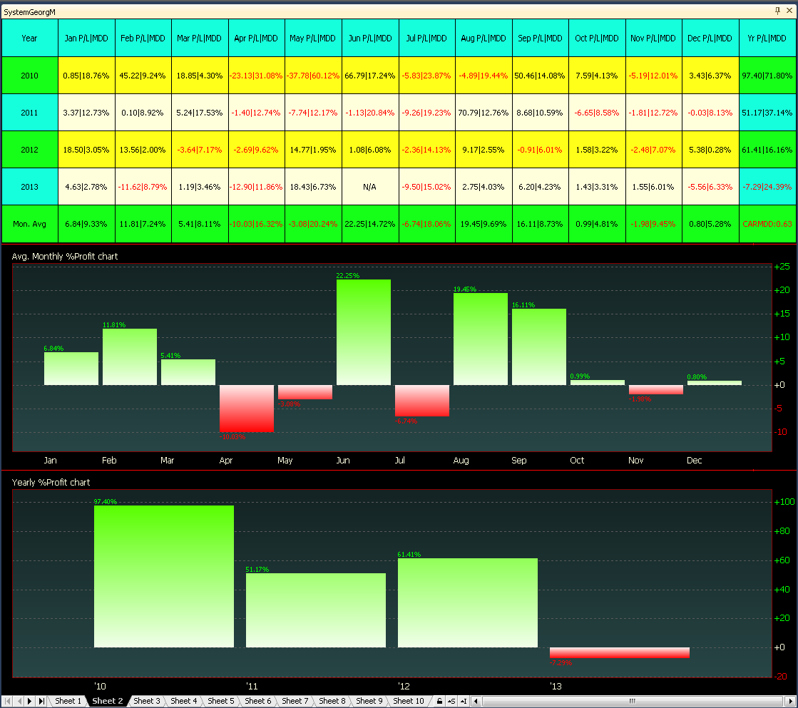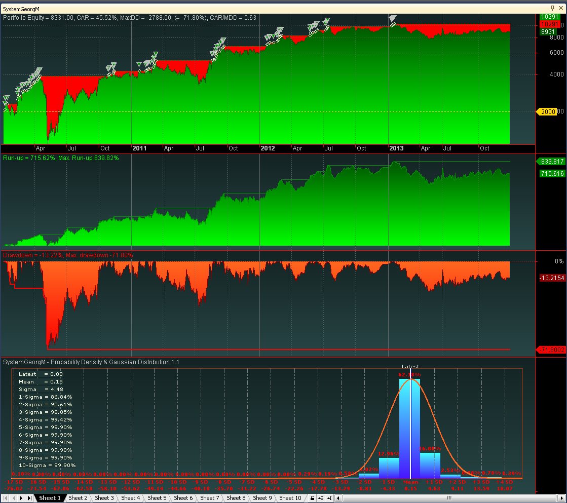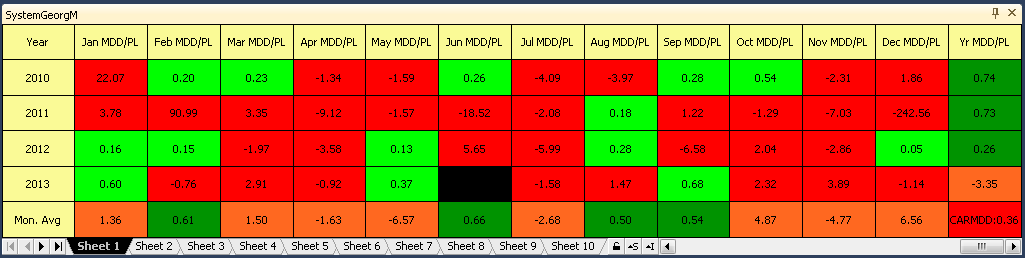 Eine weitere bittere Erkenntnis, die aber alle Leute, die Systeme entwickeln, früher oder später mitbekommen, ist, dass ein großes Maß an Beobachtungen, Überlegungen und sonstigen Mühen sich nicht automatisch in besseren Ergebnissen einer Strategie niederschlägt, und jede Strategieentwicklung trotz allerbesten Bemühens von vielen Rückschlägen und Enttäuschungen begleitet ist, die zu akzeptieren und über sie hinweg zu kommen, ein wichtiger Teil der charakterlichen Lernaufwände eines Traders ist.