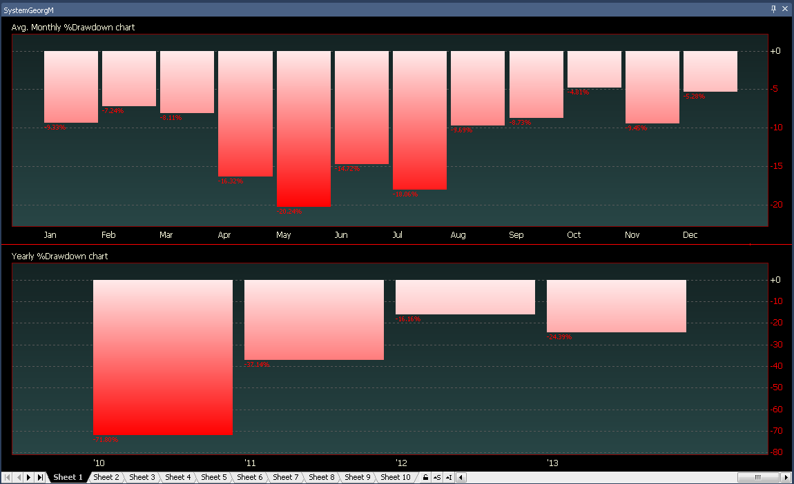 Die Strategie ist nicht stabil, weder hinsichtlich ihres zeitlichen Verlaufes noch hinsichtlich ihres RM. Da darf man sich nicht durch eine gute Gesamtrendite täuschen lassen.
