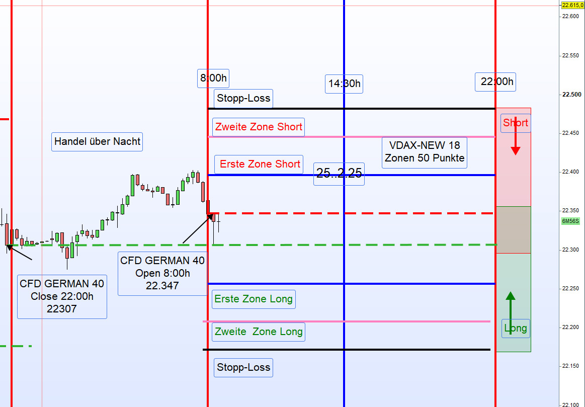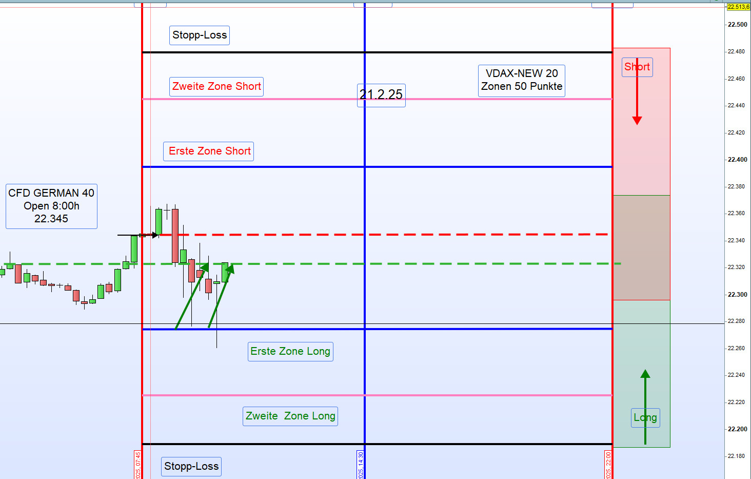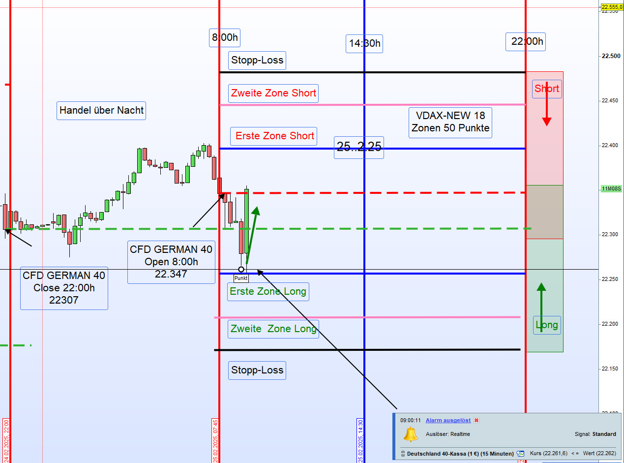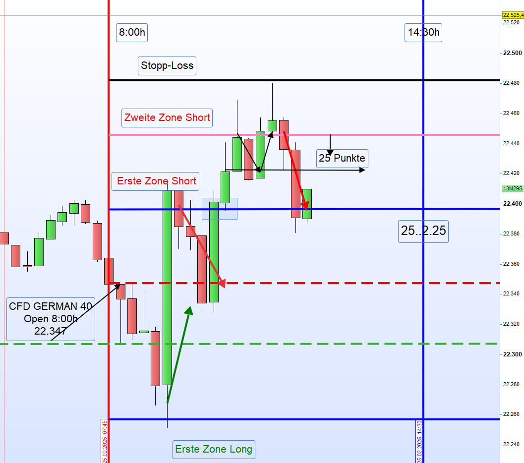 Der Einstieg erfolgt, wenn der Kurs diese Linie kreuzt oder auch wie morgens für den Zonenhandel.