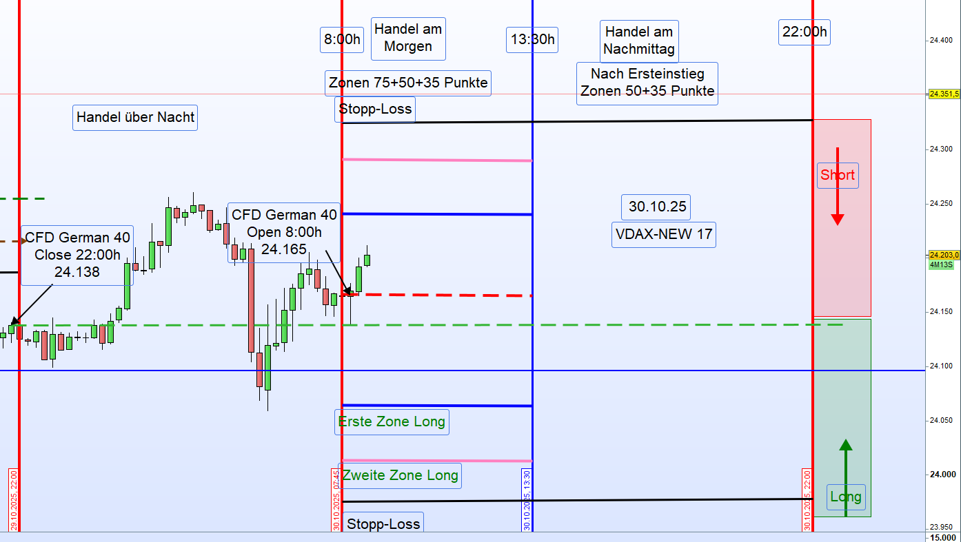 Heute Morgen, am 30.10.2025 um 8:00 Uhr, eröffnete der Markt bei 24 165 Punkten,
