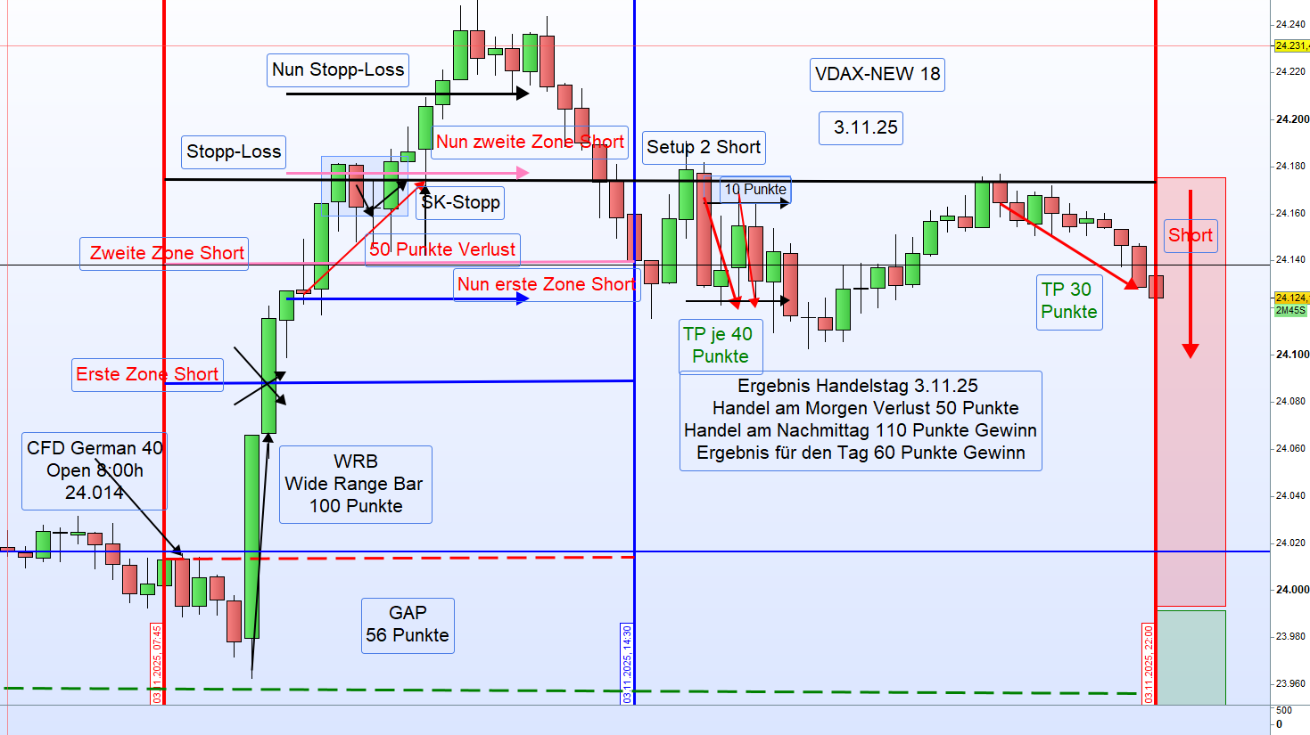 BeschreibungBerechnungKurs1. Short-Zone24 014 + 7524 0892. Short-Zone24 089 + 5024 139Stop-Loss24 139 + 3524 174 -