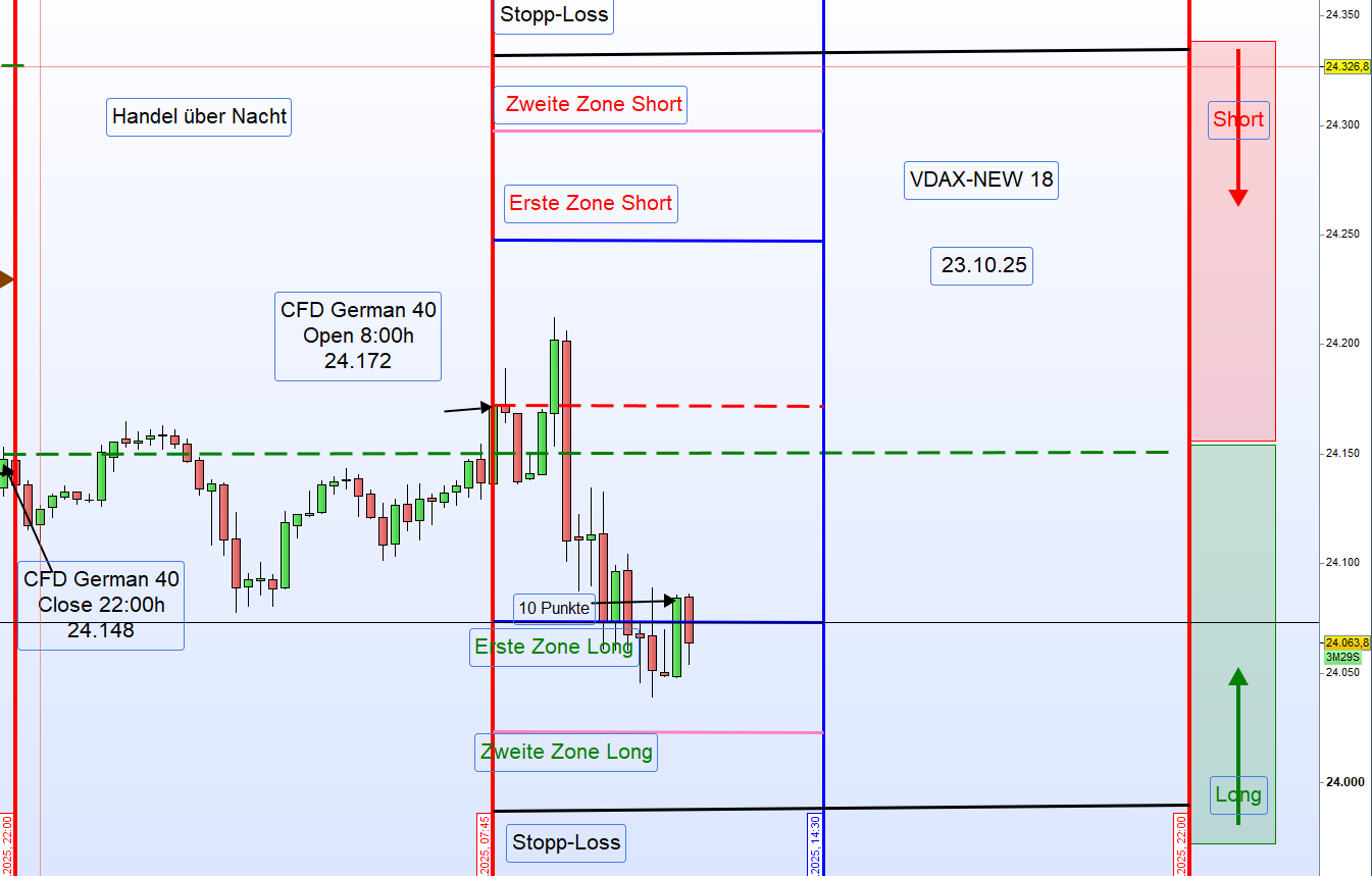 Der FDAX und damit auch die CFDs auf den German 40 notierten die gesamte Nacht im Minus.