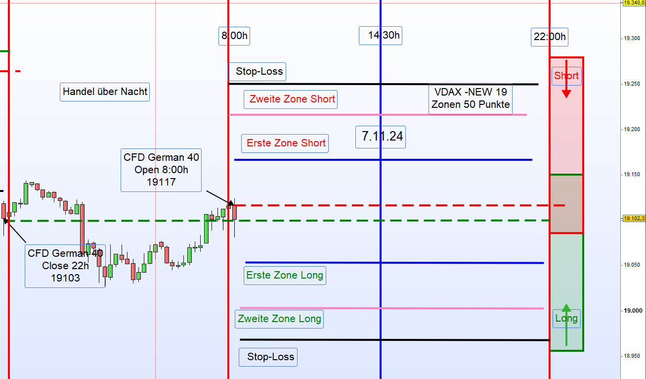 Long-Positionen: Eröffnung nahe der Unterstützungszone um 19.000 Punkte, wenn Anzeichen für eine Trendumkehr nach oben erkennbar sind.