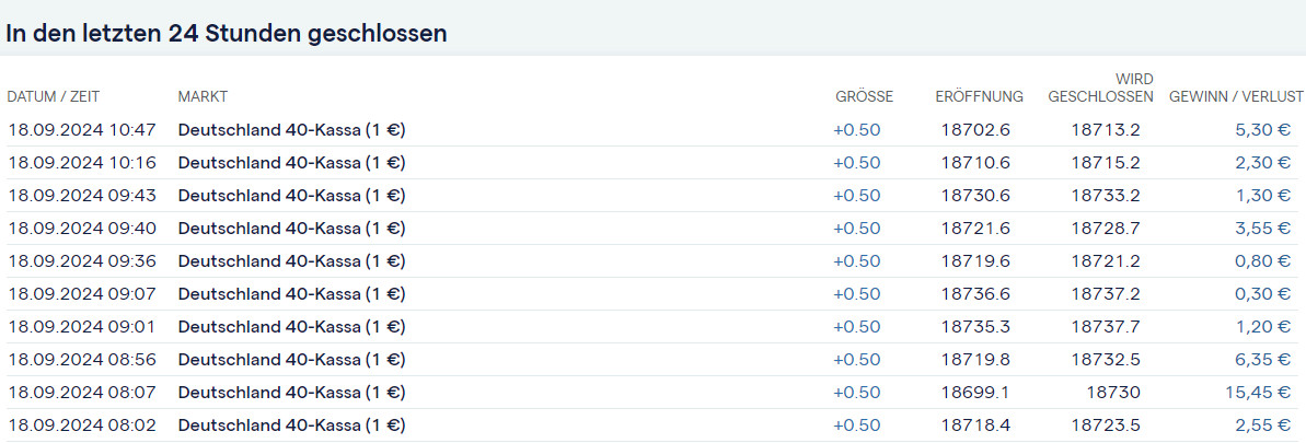 Heute Morgen von 8:00 bis 14:30h habe ich innrhalb einer Range von nur 40 Punkten und 0,5 CFDS = 80,95€ verdient. Ja verdient, denn Scalpen ist harte Arbeit !