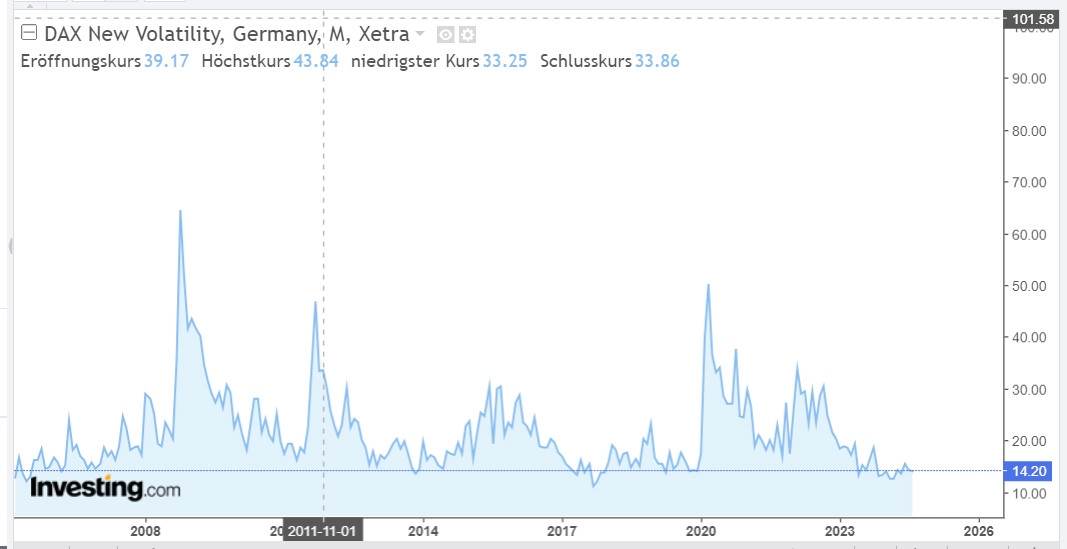 VDAX-NEW: Ähnlich wie der VIX misst der VDAX-NEW die erwartete Volatilität für den deutschen Aktienindex DAX. Er basiert auf den Preisen von Optionen, die auf den DAX laufen, und gibt ebenfalls die erwarteten Schwankungen der nächsten 30 Tage wieder.