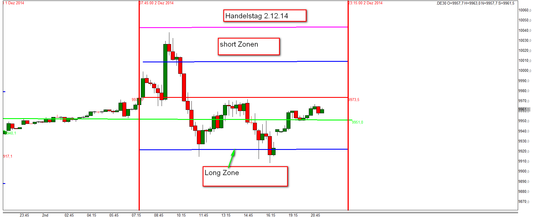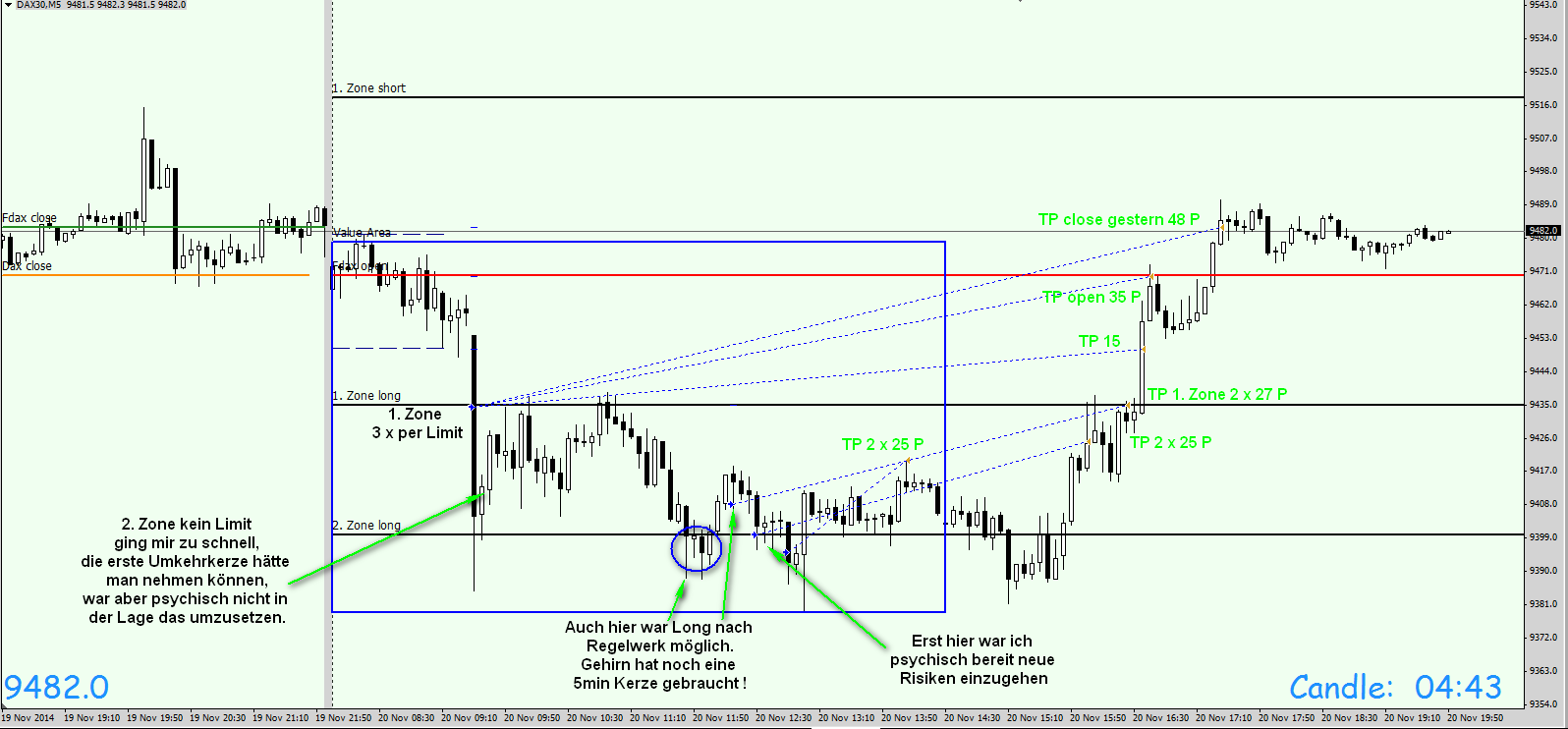 Angefügtes Bild liegt ausgedruckt neben dem Rechner. Handeln an den Rändern. Geduld aufbringen und nicht innerhalb der Zonen einsteigen. Vormittagshandel war gut aber die Umkehr an 1. Zone short war ein " muss " -
