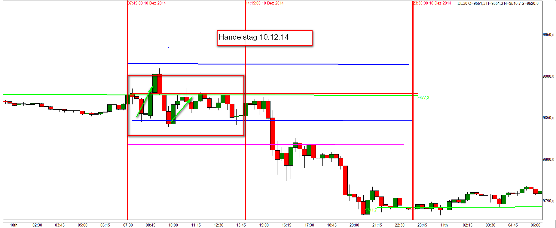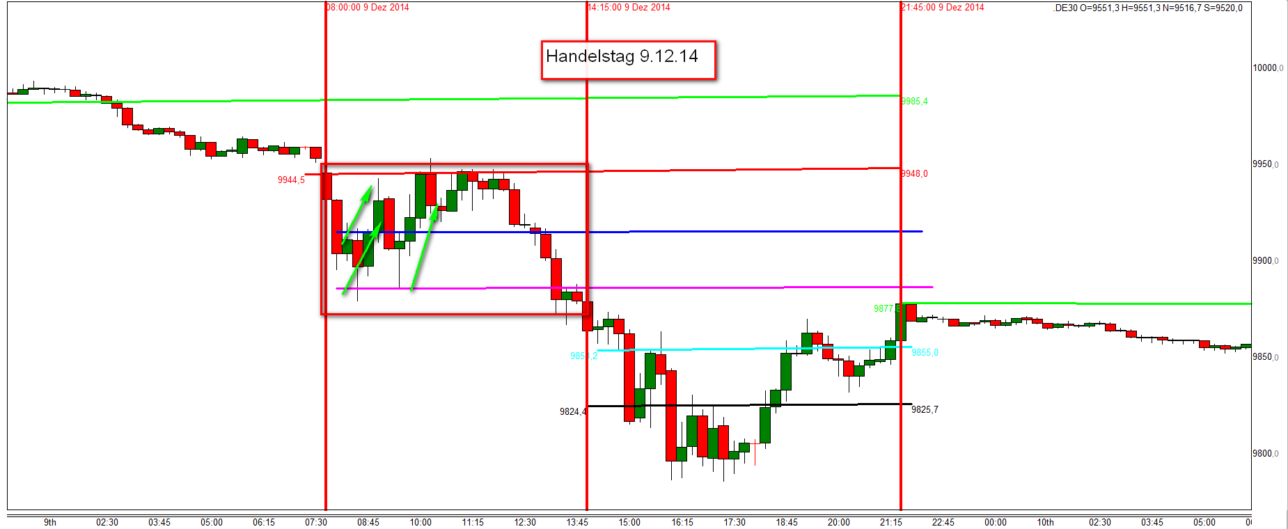 Der DAX profitiert heute vom Late Breakout DOW gestern. Es besteht jedoch ein Rückschlagpotenzial. Shorts werden bis 14:30h übergewichtet