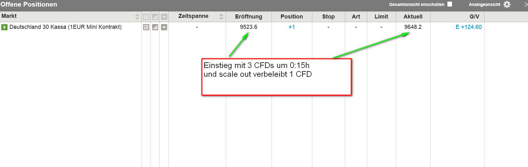 Hatte gestern berichtet, dass es heute mit hoher Wahrscheinlichkeit zu einem Kursschub nach oben kommt. Es ist daher logisch so früh als möglich einzusteigen. Da jedoch immer ein Risiko besteht wurde nach Positionseröffnung ein Stop Loss von 20 Punkten gesetzt.