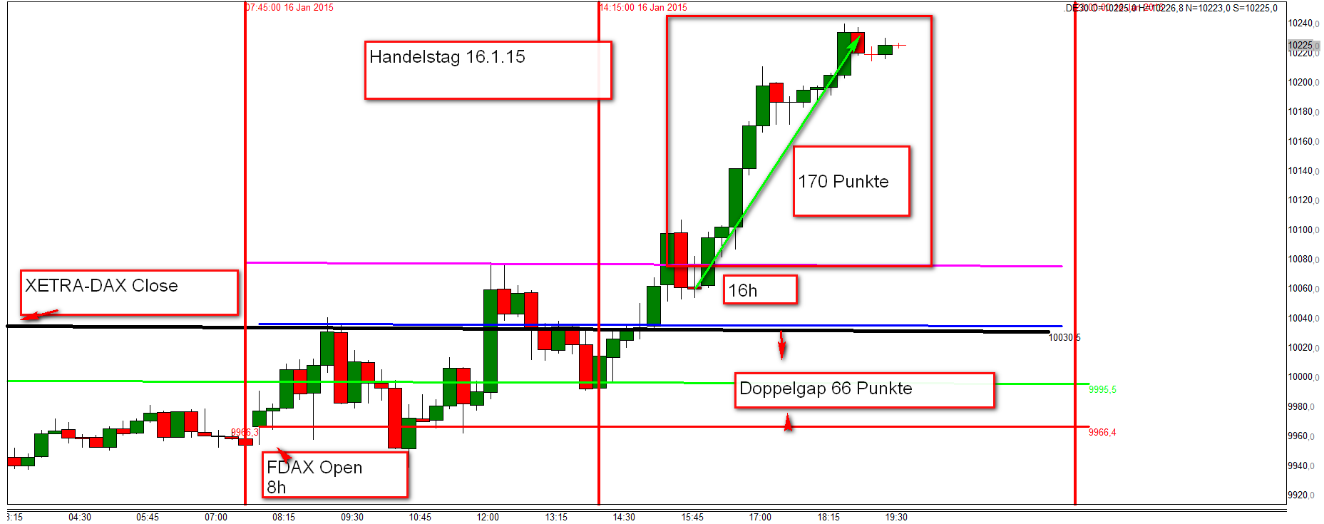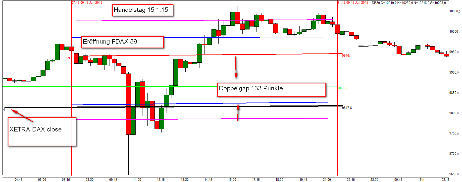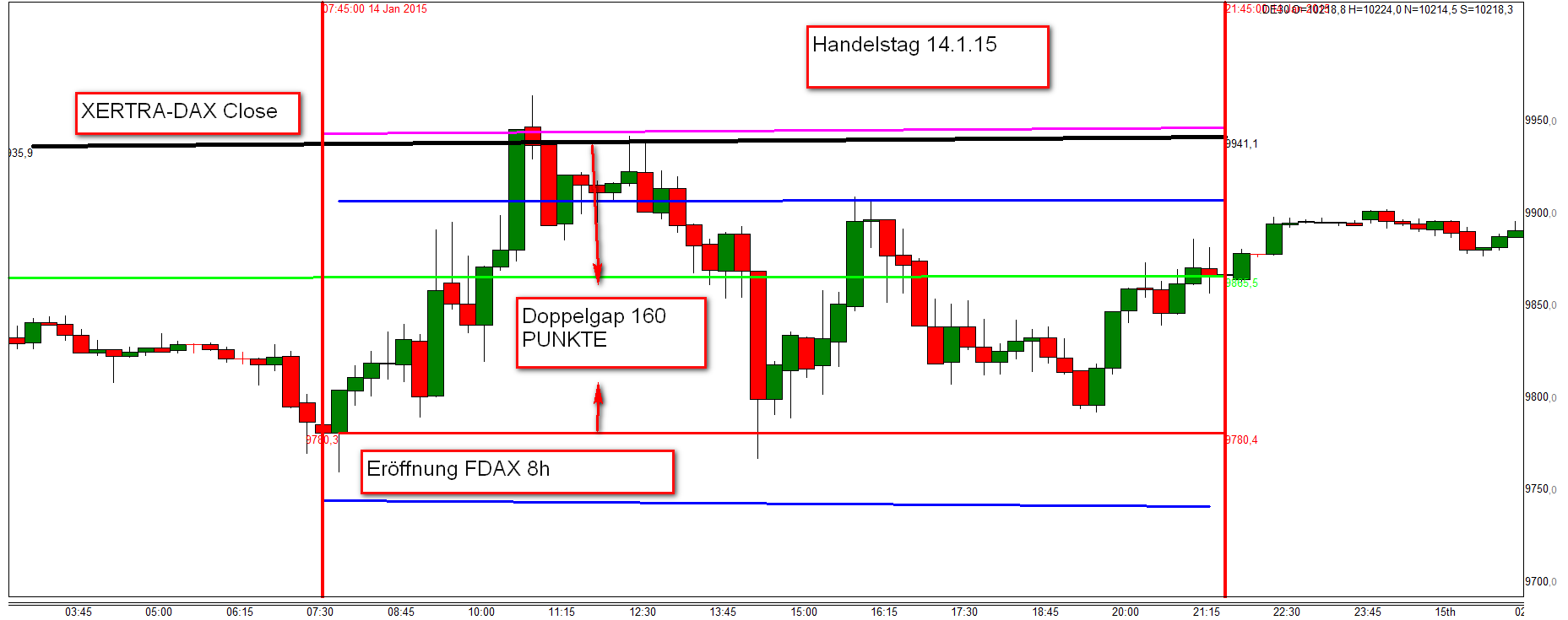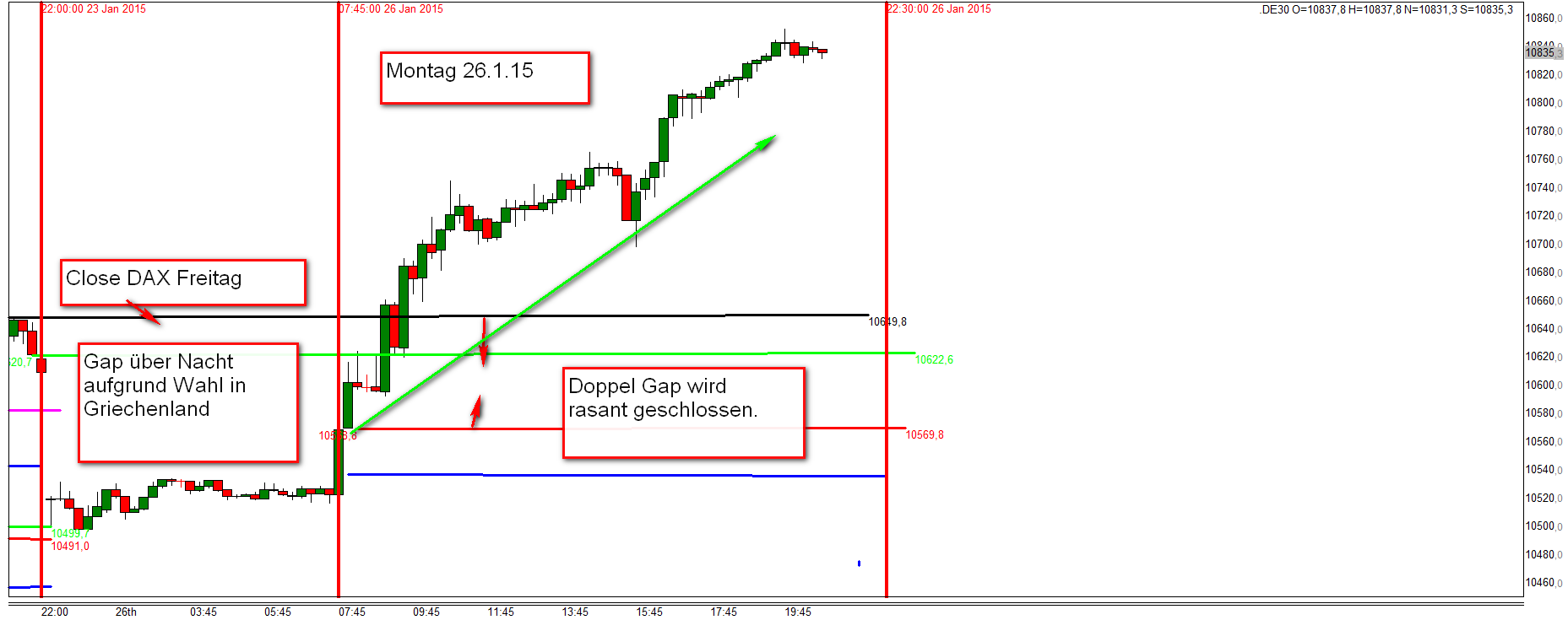 4. 26.1.15 Aufgrund der Wahl in Griechenland kam es heute Nacht zu einer Doppel-Gap die rasant geschlossen wurde.