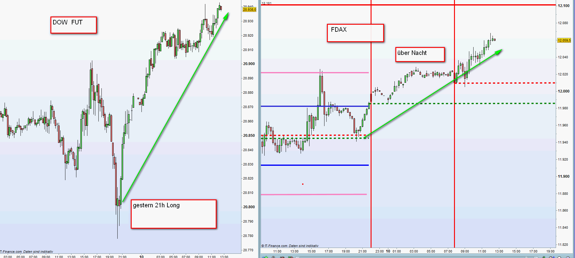 Gestern Abend konnte die Erholung vom Tagestief sehr schön beobachtet werden und in Konsequenz long kurz vor 22h. Viel Erfolg GeorgM