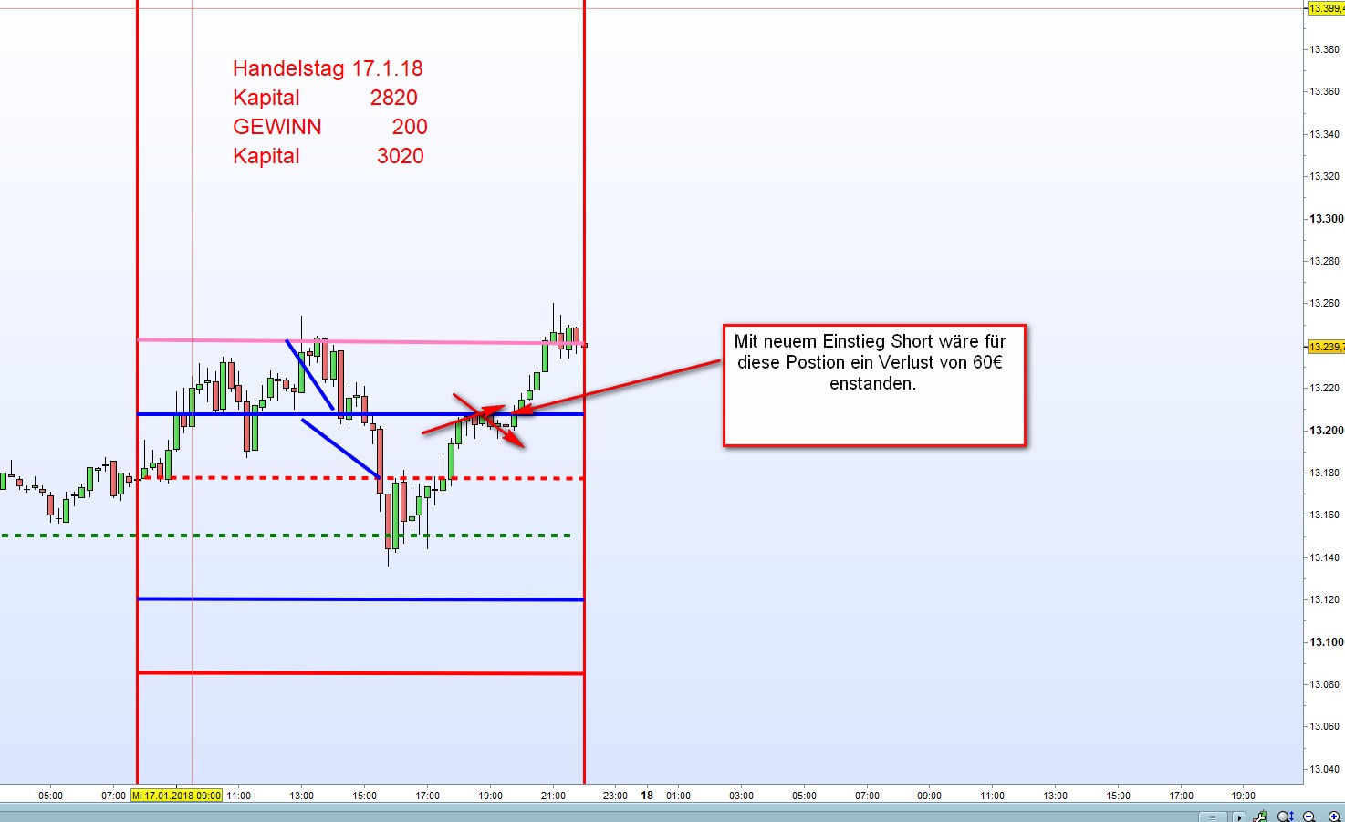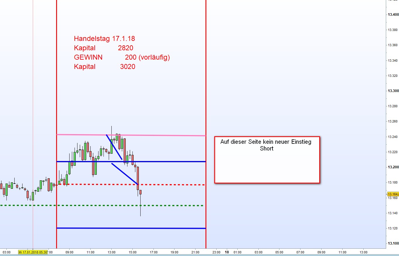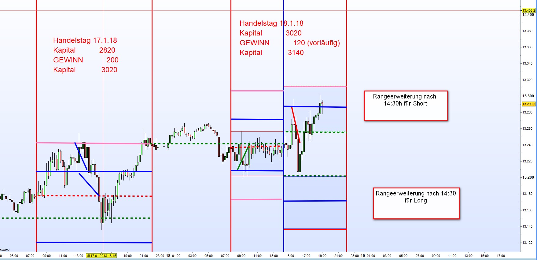 Wir unterscheiden zwischen einem mechanischen und zuzüglich diskretionären Handel der FDAX-TRADING-STRATEGIE. Der mechanische Teil hat nach Feststellung des täglichen Handelsgerüstes um 8h feste Bezugspunkte für Positionseröffnungen, Gewinnmitnahmen oder Stop Losses. Vorteil: Weniger Screen Time! Nachteil: Keine Berücksichtigung von DJIA Fut, sich anbahnende Trendtage, Veröffentlichungen von wichtigen Nachrichten....... Trotzdem hat dieser Handelsansatz gute Ergebnisse gebracht und wurden hier dokumentiert.