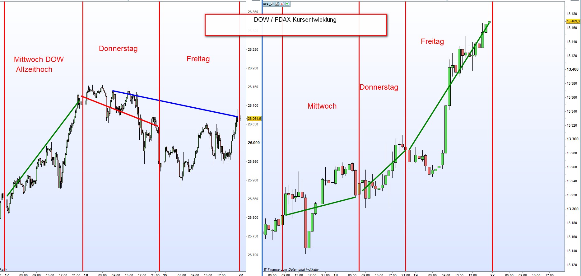 jedoch dann aus Zeitgründen nicht gemacht. In dieser hätte ich mit charts dargelegt, dass der DAX für diesen Tag gegenüber dem DOW plötzlich eine relative Stärke zeigte. Nach der gestrigen Kurseröffnung bahnte sich ein Trendtag an und es erschien mir die passende Gelegenheit die Kürzung der Gruppe und auch hier mitzuteilen. Praktisch wie eine Sturmwarnung durch den Wetterdienst. Mir ist schon klar, dass es einer Feinbeobachtung DOW/FDAX bedarf die Entwicklung zu erkennen. Eingefügt Kursentwicklung DOW/FDAX 1h Chart.Nachher noch eine Analyse FDAX / DOW -