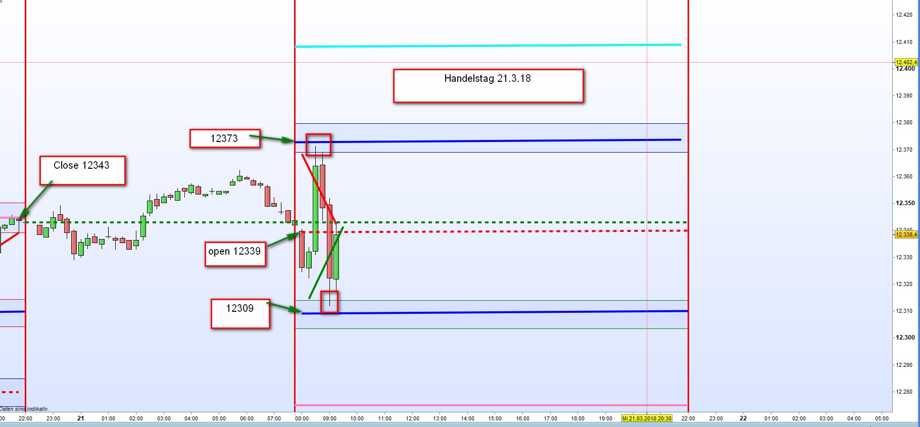 Die Aktionszonen umfassen einen Bereich von jeweils 5 Punkte über und unter der Aktionslinie. Siehe dazu den Chart von 2011. Eine Orientierung der Ergebnisse exakt an der Aktionslinie war/ist ein Zugeständnis an die EA Trader aber für den diskretionären Trader kontraproduktiv. Es kommt jeden Tag vor, wo das Ziel oder der Einstieg zwar in der Zone notiert aber nicht exakt die Aktionslinie berührt. Habe bereits mit meiner Handelstechnik dargelegt wie der diskretionäre Trader vorgehen kann.