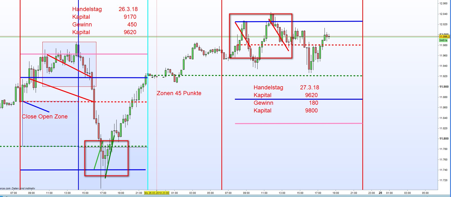 Letzte halbe Stunde hat den Tag vor einem höheren Verlust bewahrt. Wären vorher Gewinne erwirtschaftet worden, hätte dieser Trade nach 20h nicht mehr statt gefunden.