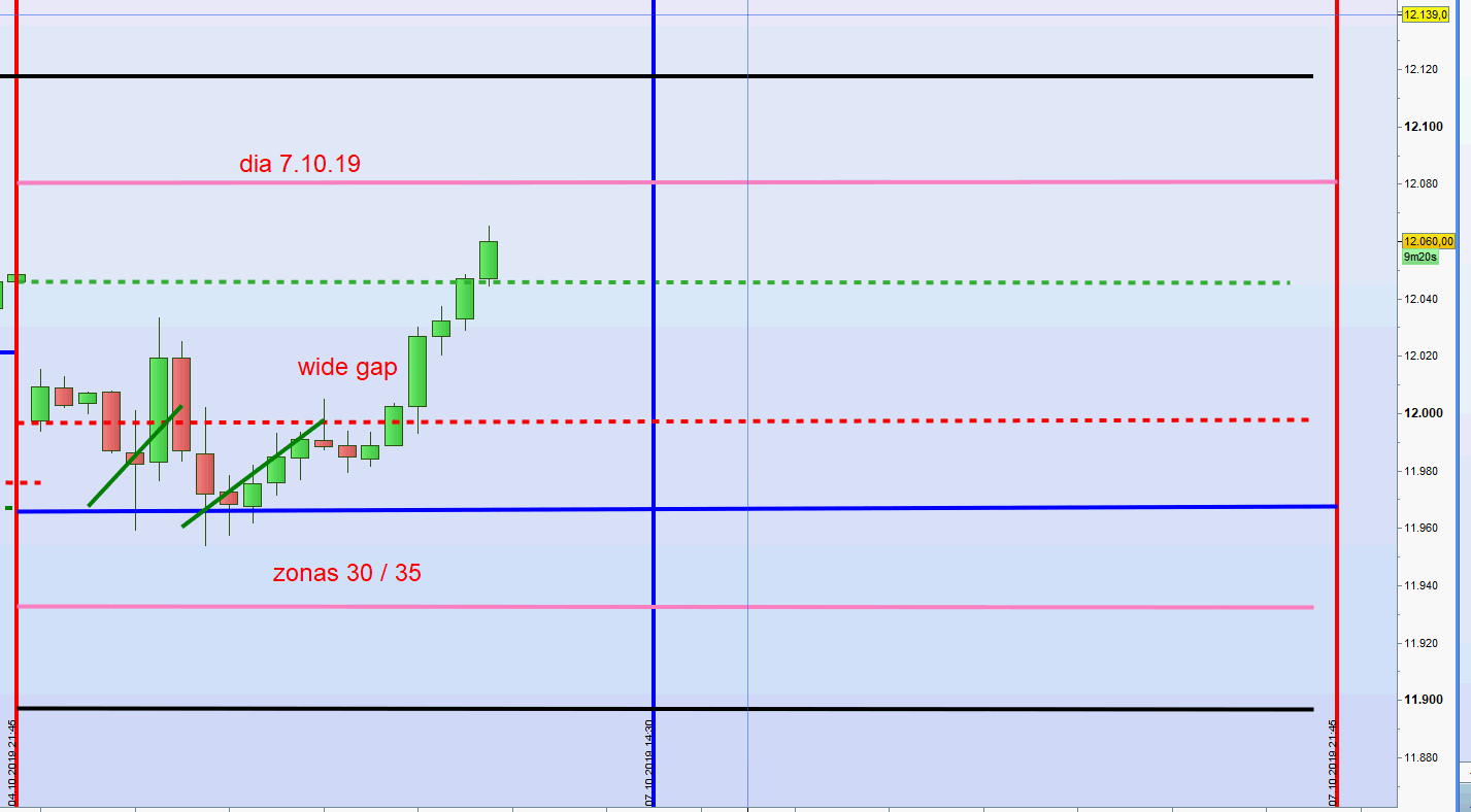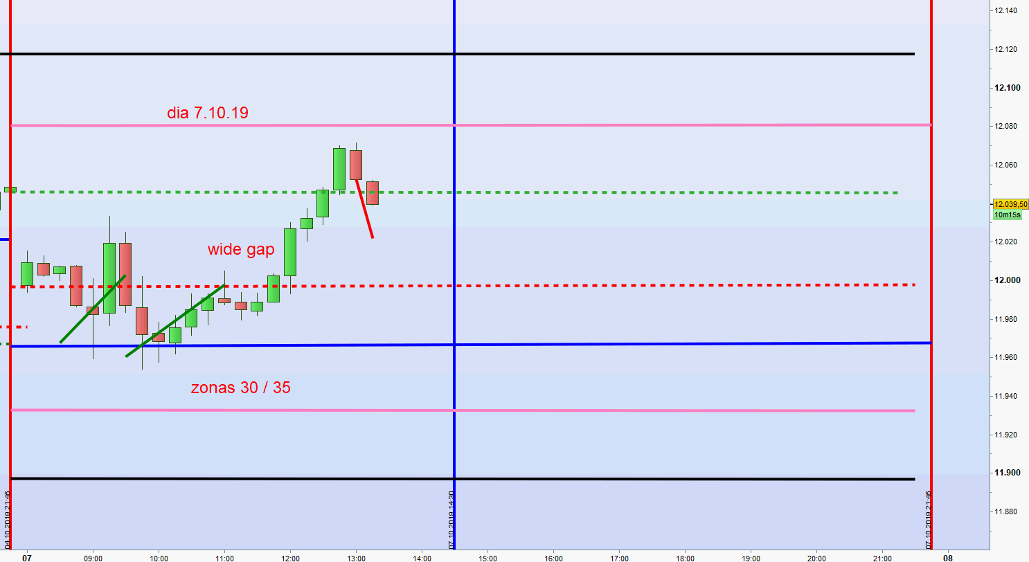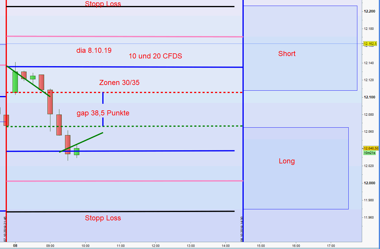 Auch stelle ich den Chart für den heutigen Handel ein. Es handelt sich um eine wide gap und die Zonen gemäß dem VDAX unter 20 sind 30/35. Es wurde bereits ein Ergebnis von 300€ mit 10 CFDs erreicht. -