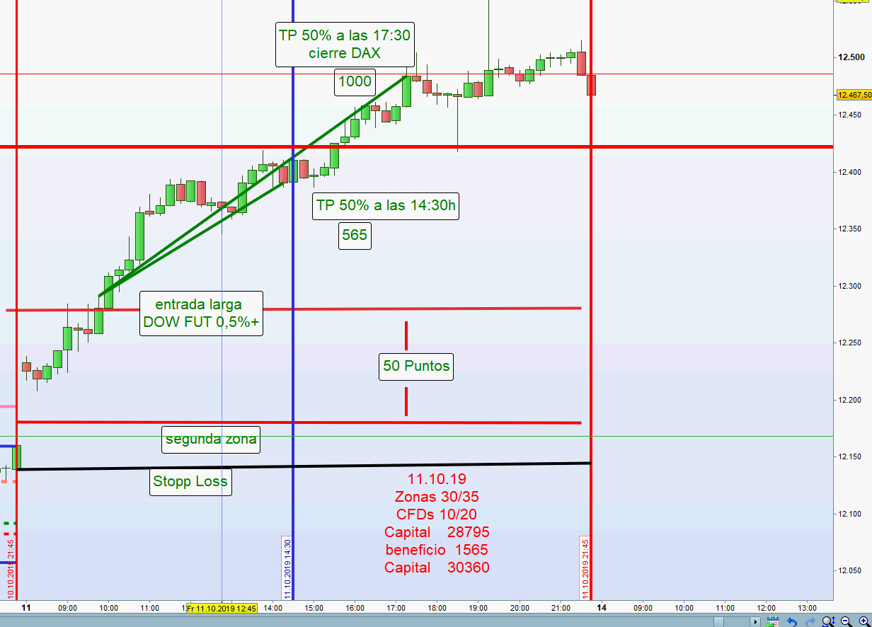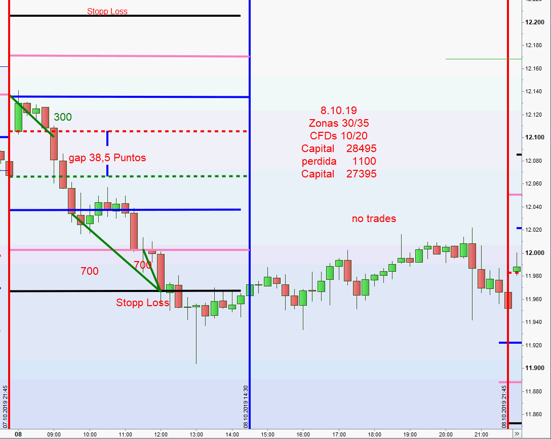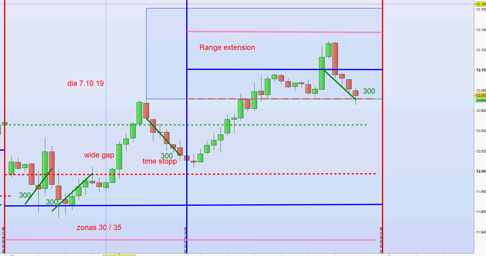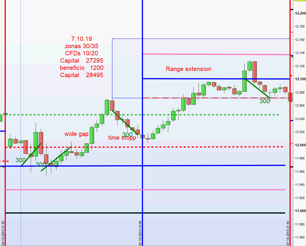 möchte ich hier erwähnen, dass ohne das Forum Candletalk das aktuelle Regelwerk nie vollendet worden wäre. Zurzeit wird die Strategie in einem kleinen Kreis von deutschen und spanischen Interessierten über Telegram gehandelt. Es handelt sich allerdings um Part Time Trader die das volle Potenzial noch nicht ausschöpfen können. Das gesamte Regelwerk liegt in beiden Sprachen vor und gemäß diesem wird morgens um 8h der Handelsrahmen eröffnet. Je nach disponibler Zeit begleite ich den Tag mit nützlichen Kommentaren und nach 22h wird das Ergebnis dargestellt. Am Wochenende erfolgt eine Zusammenfassung. Alles geschieht in bester Harmonie.