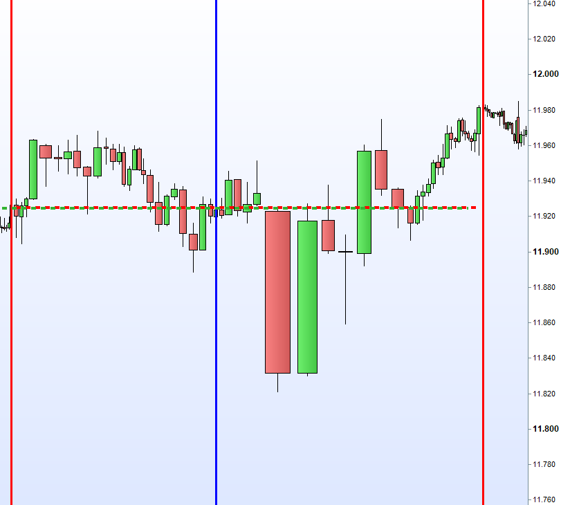 Wide Gaps sind Notierungslücken die nicht die Anforderungen einer Doppel Gap erfüllen jedoch eine Differenz von Close und Open von + 40 Punkten ausmachen. Gehandelt wird ab dem Vortagesschlusskurs, dann erste Aktionszone, mit dem Gewinnziel Eröffnungskurs um 8h. wenn nach dem Einstieg bis 14:30h das Ziel nicht erreicht wurde, erfolgt ein Zeitstopp. Es ist ein Revers Gap Close Handelsansatz. Notiert de VDAX-NEW über 20 wird der Handel der Wide Gap erst nach einer Mindestlücke von 70 Punkten in Erwägung gezogen. Bei einer Lücke über 100 Punkte erfolgt die Zoneneinteilung ab 70 Punkte, dann erste Zone, innerhalb der Lücke. Kein WG Handel wenn VDAX-NEW über 25 notiert. Auf der jeweiligen Gegenseite erfolgt der normale Zonenhandel. -