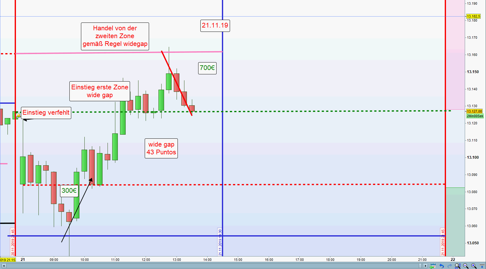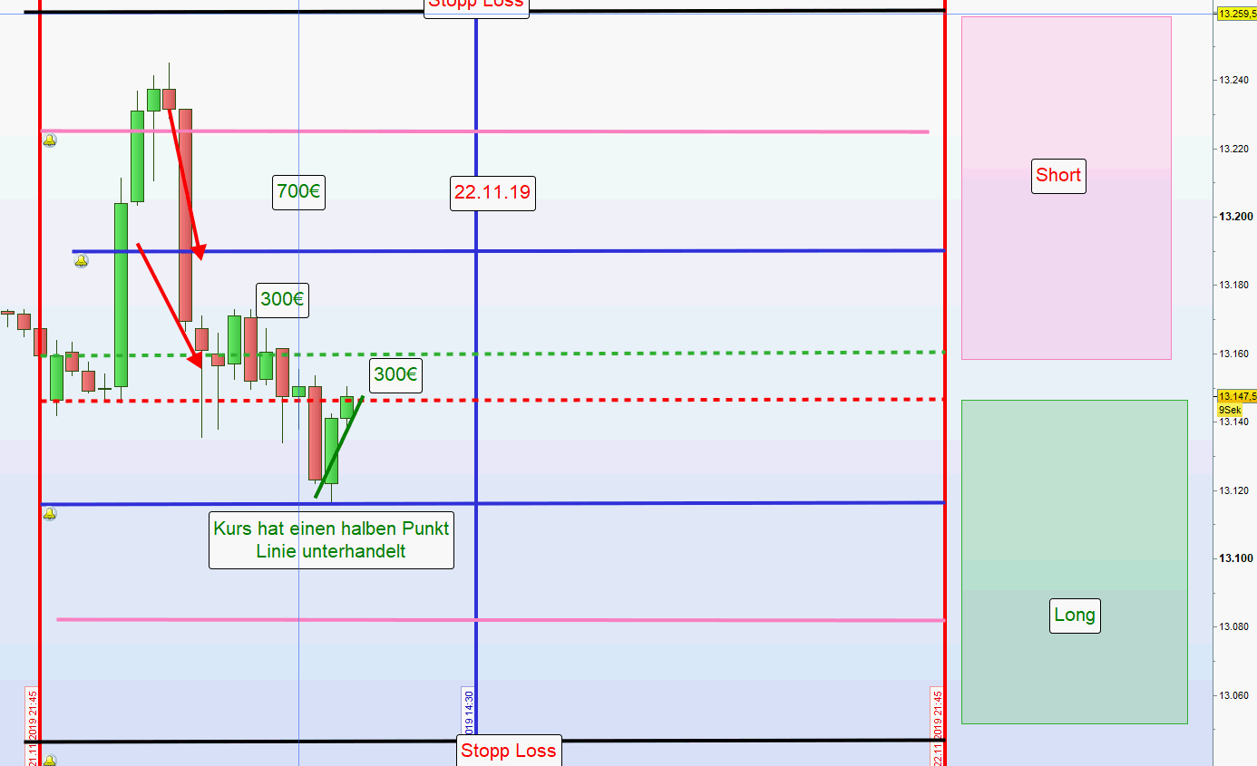Gestern hätte dieser Setup mit Erfolg gehandelt werden können. Dieser Setup ist von hoher Erfolgserwartung geprägt. Er tritt bei höherer Volaltilität öfters auf.